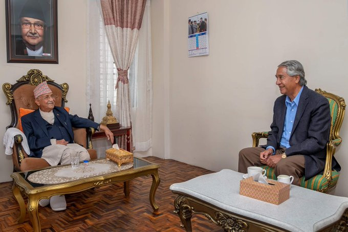 प्रधानमन्त्री ओली र सभापति देउवाबीच भेट