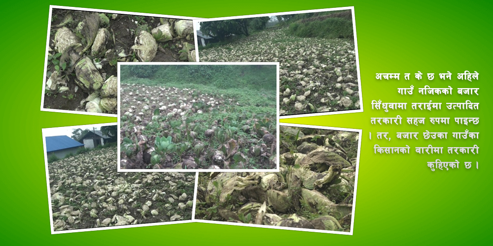 यहाँ उत्पादित बन्दाकोभीको मूख्य बजार पूर्वी तराईका सहर र भारतको पश्चिम बंगाल तथा बिहारका विभिन्न सहर हुन् । तर, अचम्म त के छ भने अहिले गाउँ नजिकको बजार सिँधुवामा तराईमा उत्पादित तरकारी सहज रुपमा पाइन्छ । तर, बजार छेउका गाउँका किसानको वारीमा तरकारी कुहिएको छ ।