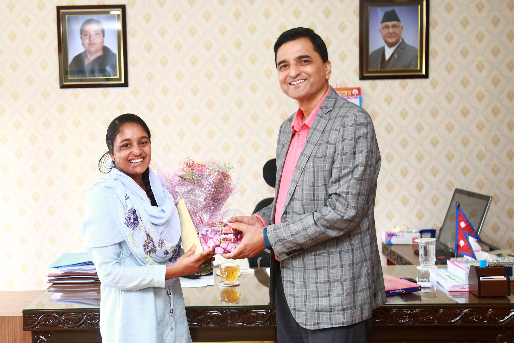 जन्मदिनका अवसरमा मन्त्री भट्टराईद्वारा एक महिनाको पारिश्रमिक एसिड पीडितलाई