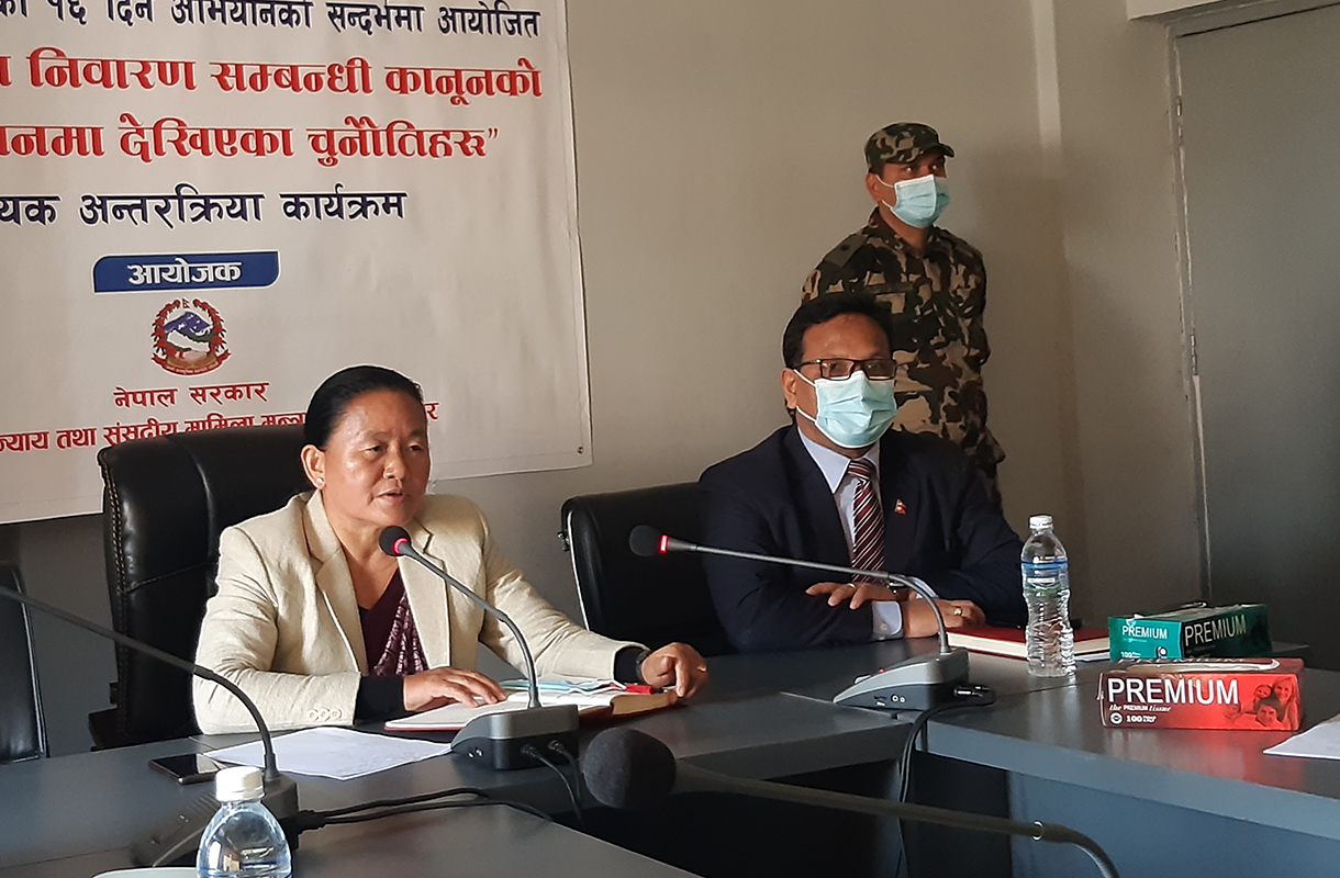 कार्यक्रममा मन्त्रालयका सचिव ऋषि राजभण्डारीले महिलाविरुद्धका हिंसा कम गर्दै नेपाललाई लैंगिकमैत्री मुलुकको रुपमा चिनाउन सकिने बताउनुभयो ।