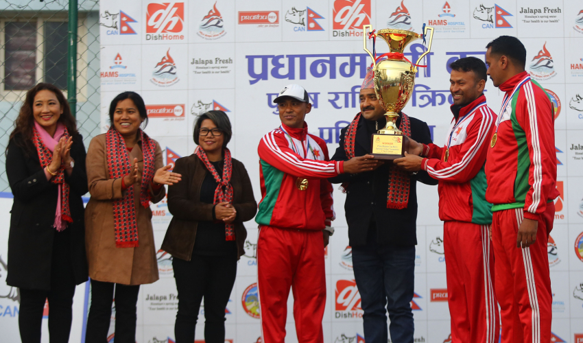 राष्ट्रिय खेलकुद परिषद् (राखेप) को आर्थिक सहयोग तथा नेपाल क्रिकेट सङ्घ (क्यान) को आयोजनामा प्रधानमन्त्री कप एक दिवसीय क्रिकेट प्रतियोगिता आयोजना गरिएको हो । प्रतियोगिताको विजेताले रु १० लाख तथा उप विजेताले रु पाँच लाख पुरस्कार प्राप्त गरे ।-