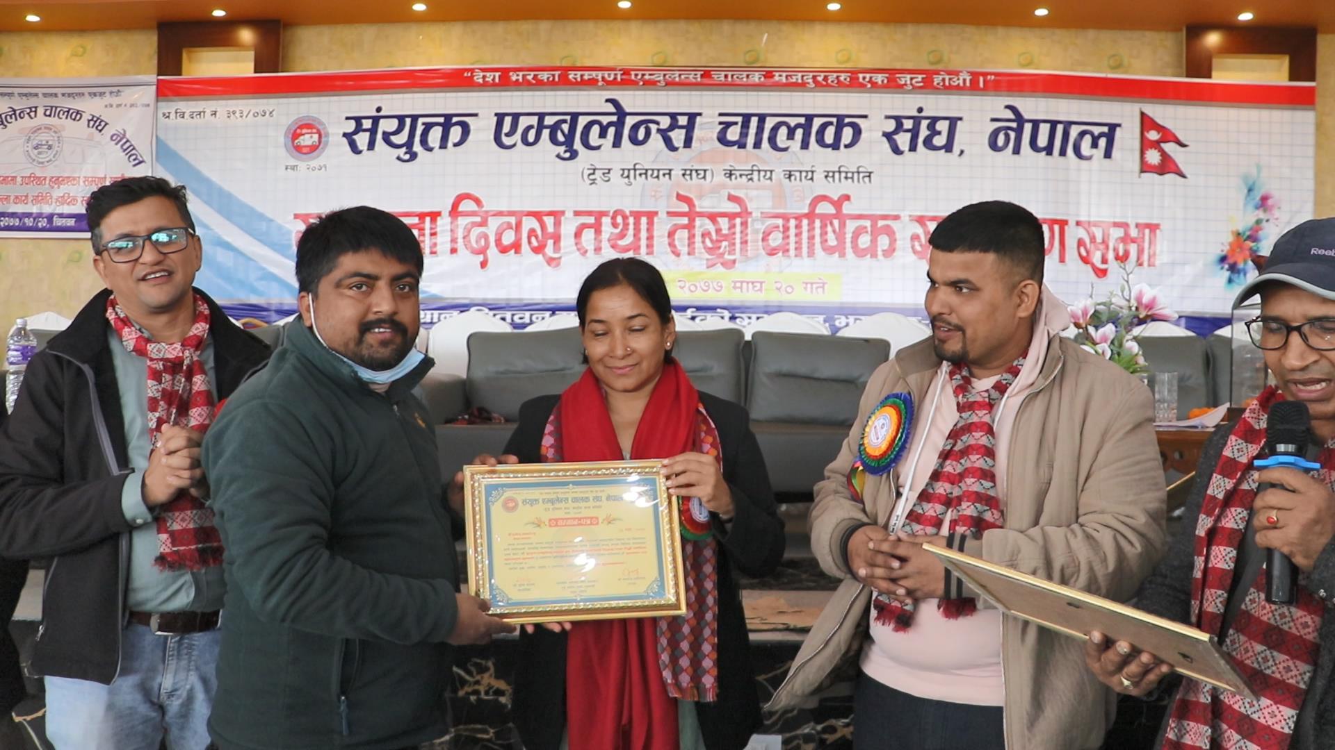 संयुक्त एम्बुलेन्स चालक संघ नेपाल (ट्रेड युनियन) केन्द्रीय कार्य समितिको स्थापना दिवस तथा तेस्रो वार्षिक साधरणसभाको पूर्वगृह तथा उर्जामन्त्री जनार्दन शर्मा प्रभाकरले उद्धघाटन गर्नुभएको थियो ।