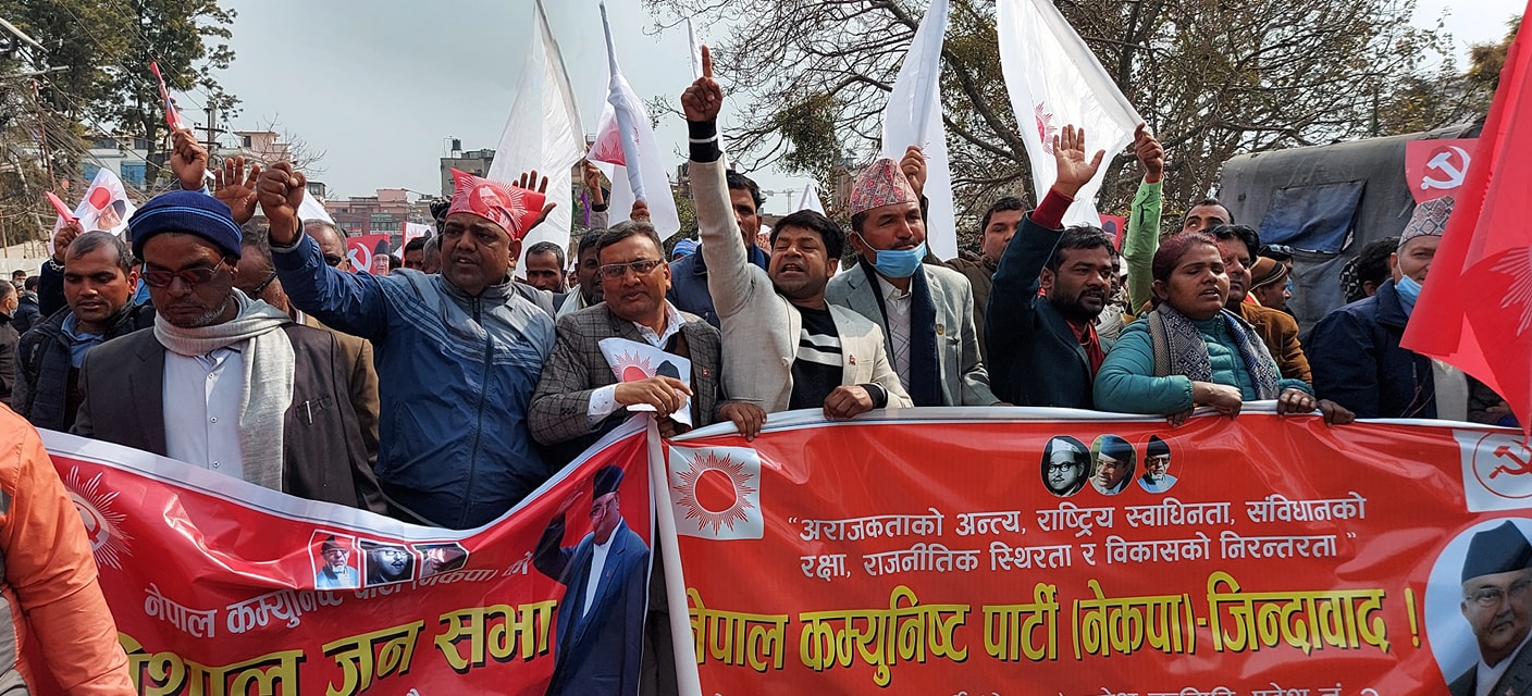 नारायणहिटी अगाडि नेकपाको शक्ति प्रदर्शन, प्रधानमन्त्रीसहित शीर्ष नेताहरुले सम्बोधन गर्ने