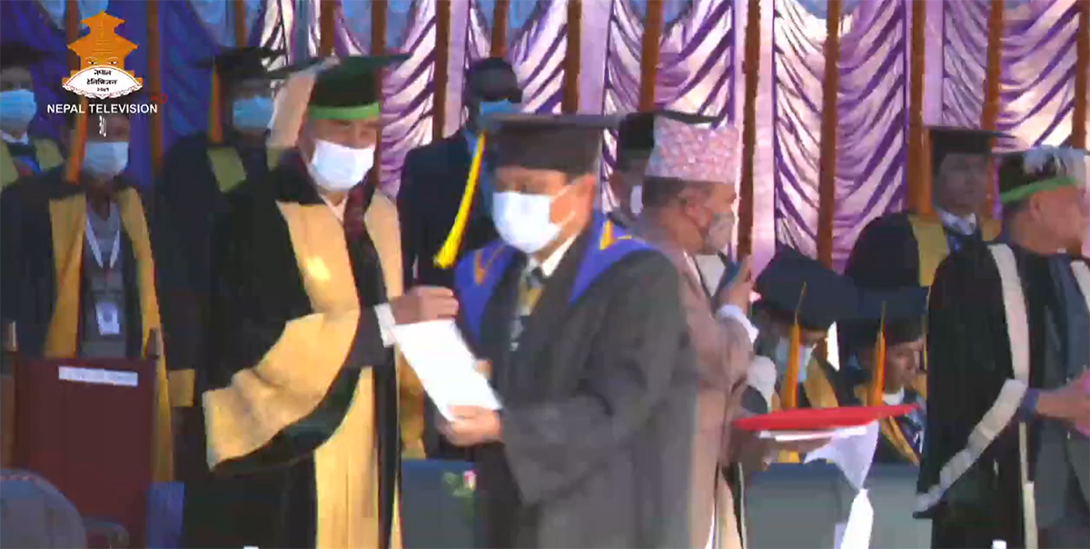 काठमाडौं– त्रिभूवन विश्वविद्यालयको ४७ औं दीक्षान्त समारोह जारी छ । समारोहमा विश्वविद्यालयका कुलपति एवं प्रधानमन्त्री शेरबहादुर देउवा, सहकुलपति एवं शिक्षा, विज्ञान तथा प्रविधि मन्त्री देवेन्द्र पौडेललगायत सहभागी हुनुभएको छ ।