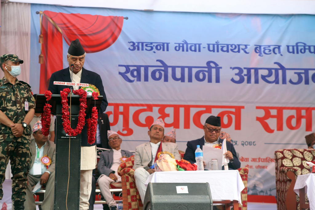 सो अवसरमा प्रधानमन्त्री देउवाले प्रत्येक नागरिकलाई खानेपानी उपलब्ध गराउने संवैधानिक अधिकार तथा दीगो विकासको लक्ष्य प्राप्तिमा यस आयोजनाले सहयोग पु¥याउने बताउनुभयो । “स्वच्छ खानेपानी र सरसफाइको सुविधा आम नागरिकसम्म पु¥याउनु सरकारको दायित्व हो”, उहाँले भन्नुभयो, “सहरी र गाउँमा स्वच्छ खानेपानी आपूर्तिको व्यवस्था अझैसम्म सुनिश्चित हुन सकिएको छैन् । खानेपानीकै लागि धेरै समय खर्चनुपर्ने बाध्यता अझै कायमै छ । यस्तो अवस्थाको अन्त्यका लागि स्थानीयस्तरका मुहानमा आधारित साना तथा मझौला आयोजना निर्माणमा जोड दिनुपर्छ ।”