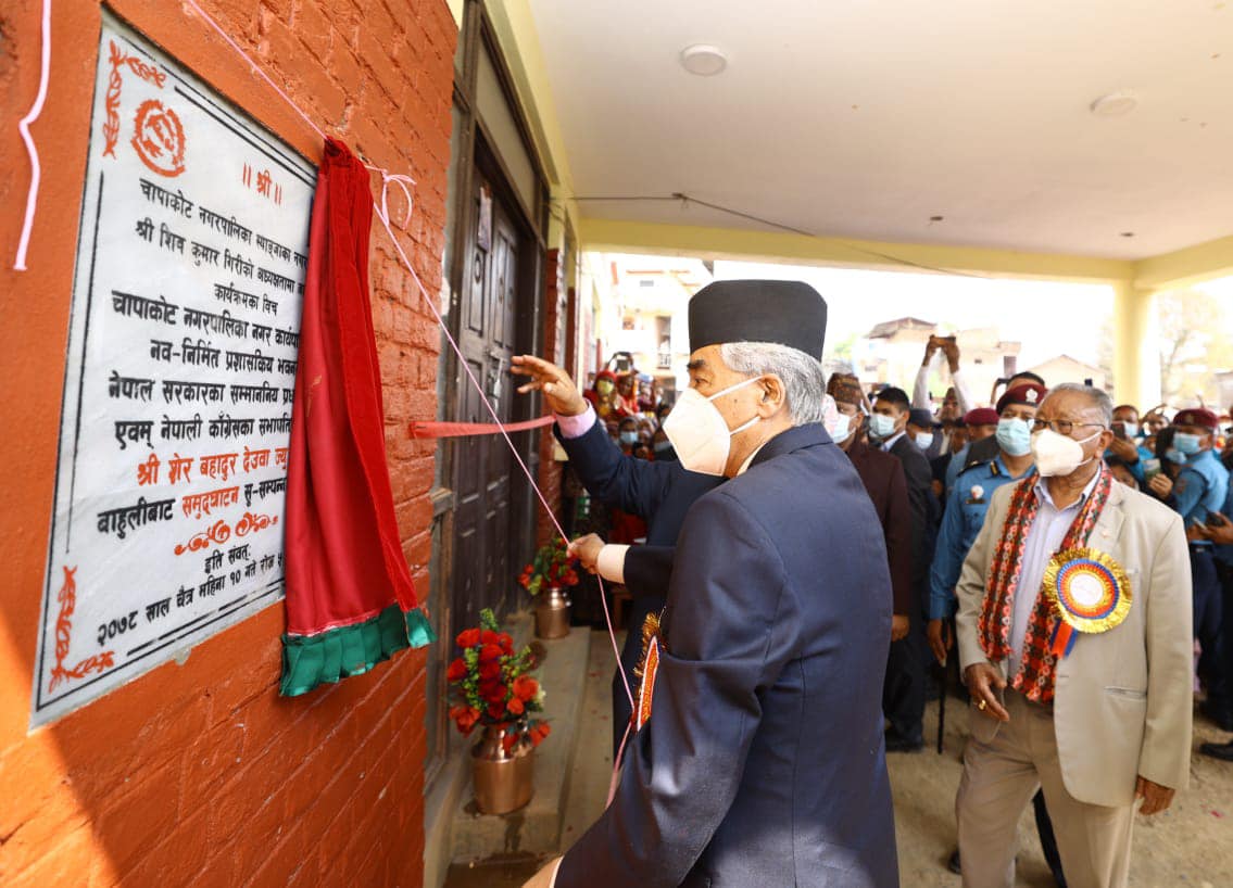प्रधानमन्त्री देउवाले त्यहाँ चापाकोट नगरपालिकाको नवनिर्मित भवनको उद्घाटन गर्नुभएको छ ।