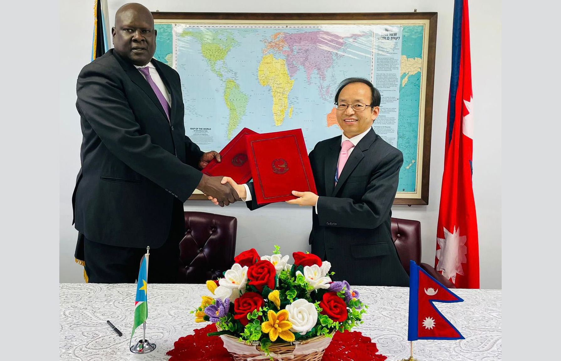 द्विपक्षीय कूटनीतिक सम्बन्ध स्थापना गर्नेसम्बन्धी संयुक्त विज्ञप्तिमा संयुक्त राष्ट्रसङ्घका लागि नेपालका राजदूत अमृतबहादुर राई र उक्त विश्व संस्थाका लागि गणतन्त्र दक्षिण सुडानका राजदूत अकुएई बोना मालवालले न्यूयोर्कस्थित संयुक्त राष्ट्रसङ्घका लागि नेपालको स्थायी नियोगमा सोमबार आयोजित संक्षिप्त समारोहमा हस्ताक्षर गर्नुभयो ।