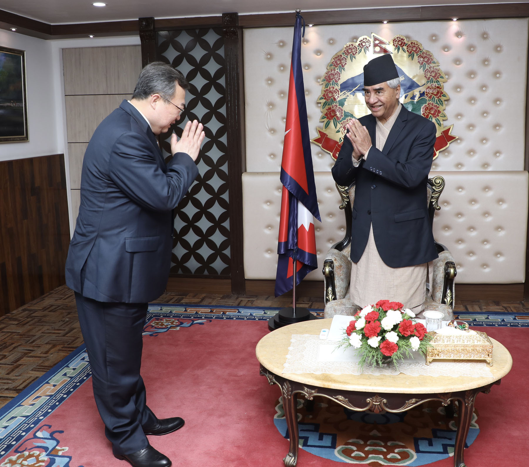 प्रधानमन्त्री देउवासँग विदेश विभाग प्रमुख लिउको भेट