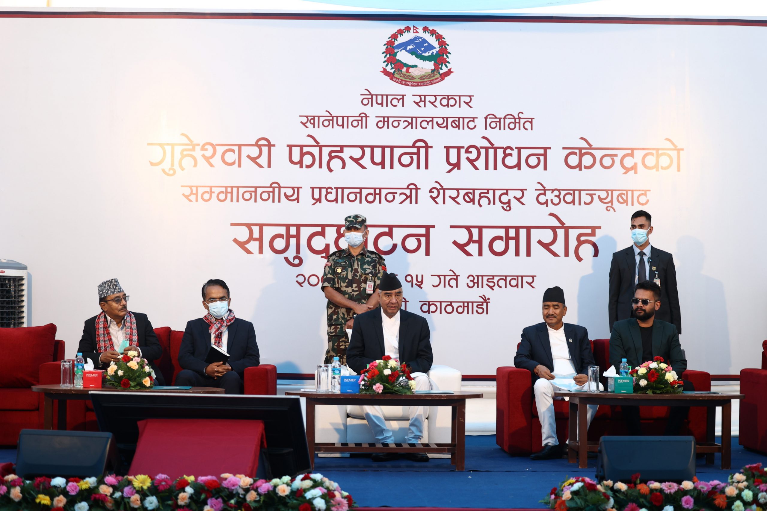 काठमाडौको गुहेश्वरीमा निर्माण भएको फोहोरपानी प्रशोधन केन्द्रको उद्घाटन गर्दै प्रधानमन्त्री देउवाले बाग्मतीबाट सुरु भएको फोहोरपानी प्रशोधन केन्द्र अन्य शहरमा पनि स्थापना गरिने बताउनुभएको हो । बाग्मतीमा प्रशोधन केन्द्र स्थापना गरेपछि पशुपति क्षेत्र पनि सफा हुने उल्लेख गर्दै धार्मिक पर्यटकको समेत विकास हुने विश्वास उहाँले व्यक्त गर्नुभयो ।
