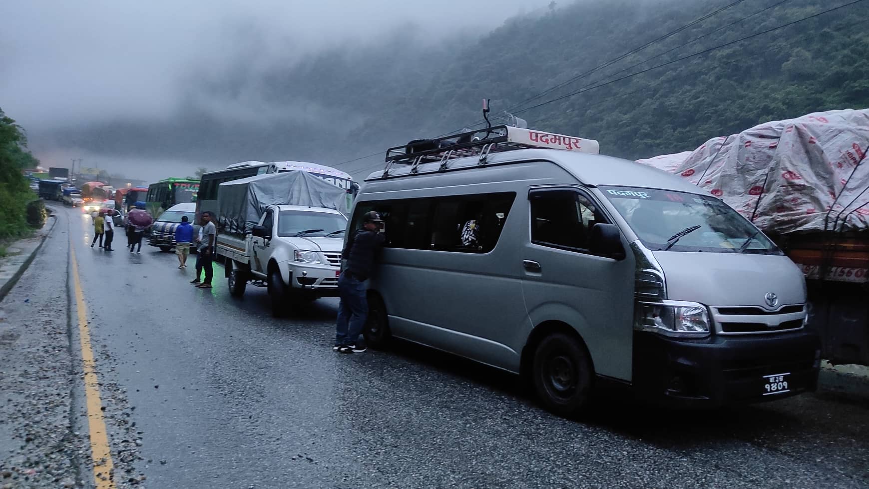 गए रातिदेखि लगातार पानी परिरहेका कारण सो सडकखण्डमा यात्रा गर्दा सावधानी अपनाउन प्रहरीले आग्रह गरेको छ ।।