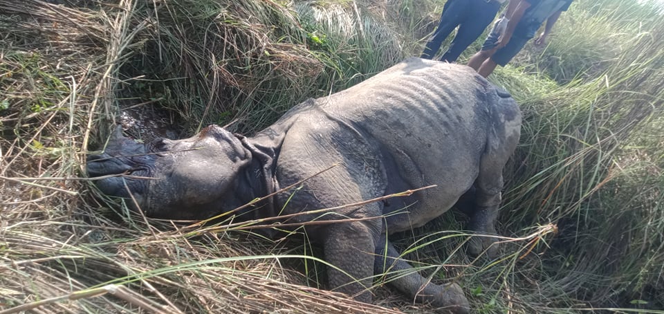 गैंडा बुढो भएर मरेको प्रारम्भिक अनुमान गरिएको छ ।।