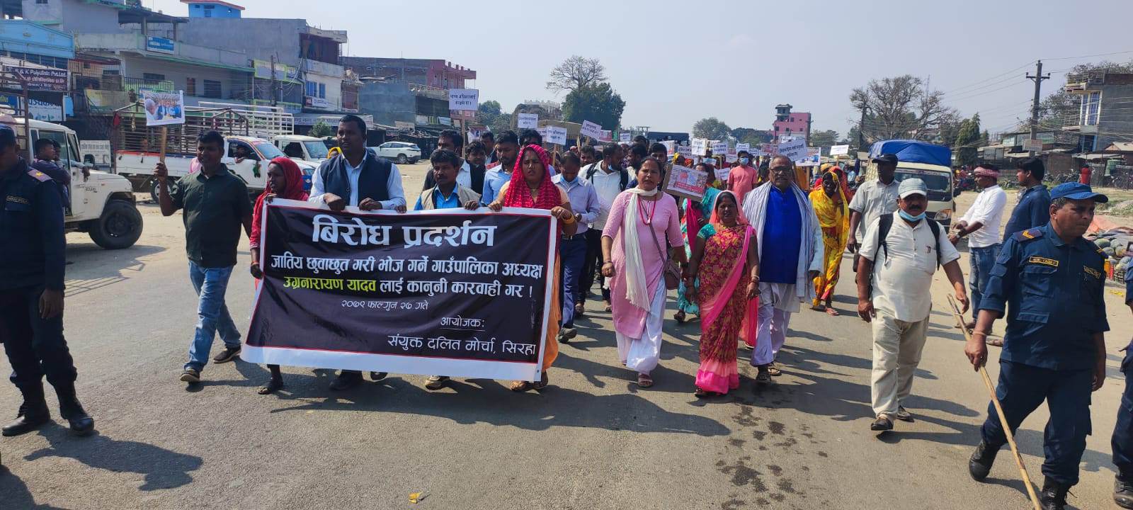 संयुक्त दलित मोर्चा सिरहाले दलित समुदायलाई अपमानित हुने व्यवहार गरेका भगवानपुर गाउँपालिका अध्यक्ष यादवलाई कारबाही गर्न माग गरेको हो ।