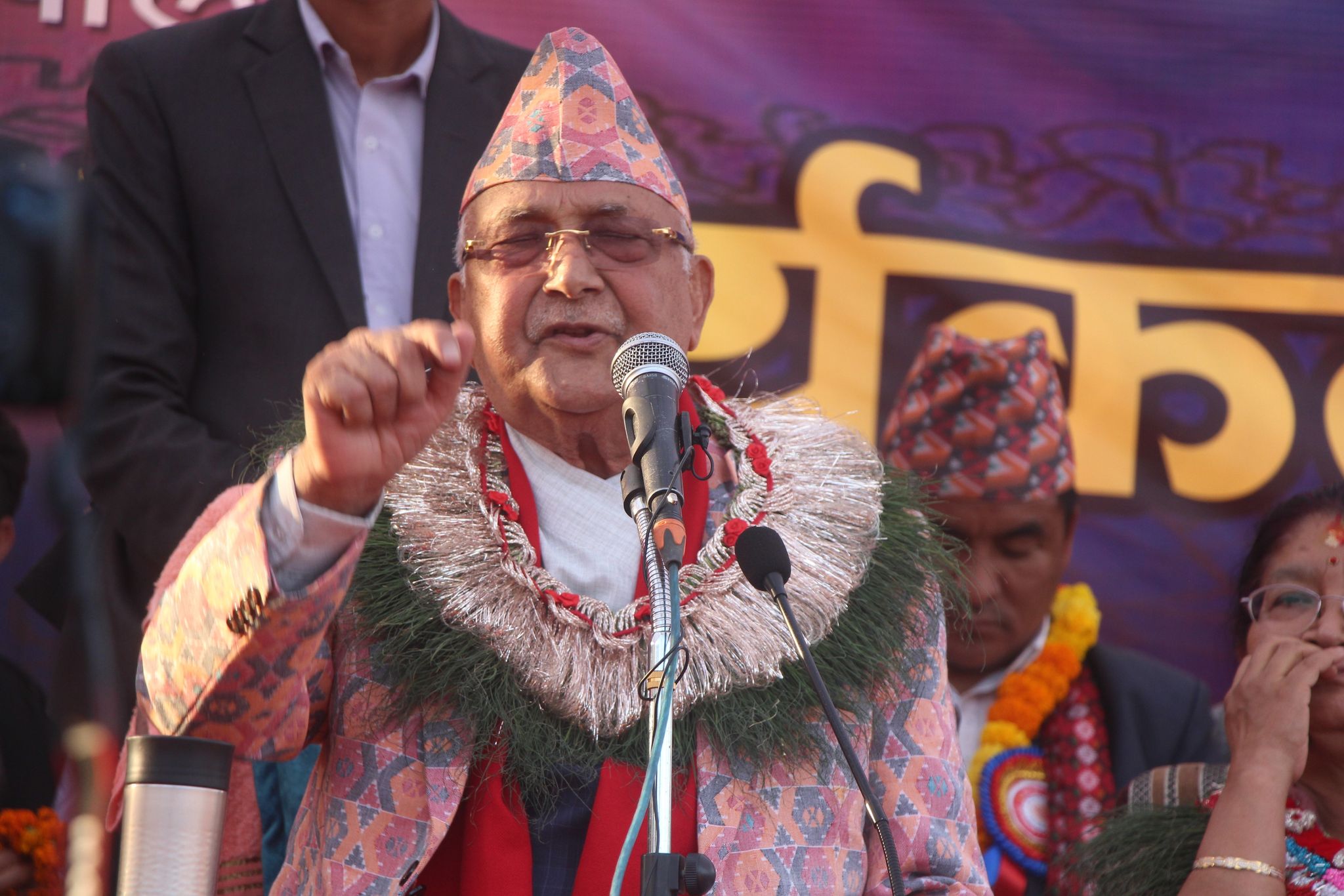 एमालेको मिसन ग्रासरुट अभियानको क्रममा पाल्पा तानसेनस्थित दमकडामा आयोजित कार्यक्रमलाई सम्बोधन गर्दै ओलीले दश गठबन्धन र बाह्य शक्तिले एमालेलाई कमजोर बनाउने प्रयास भएको टिप्पणी गर्नुभएको हो ।