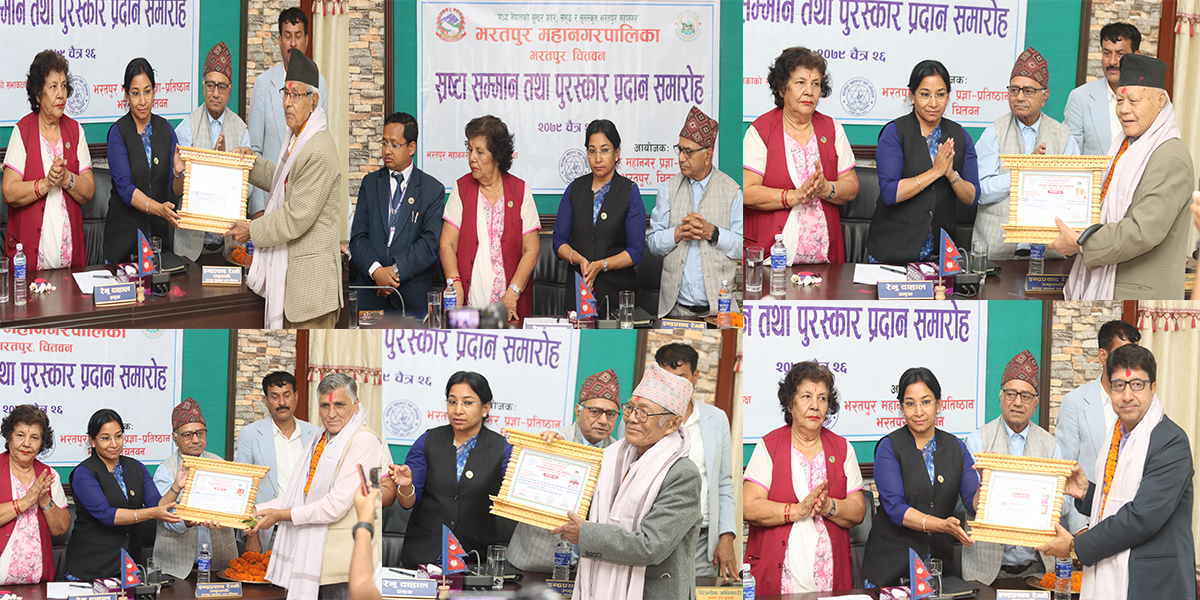 चितवन- भरतपुर प्रज्ञा–प्रतिष्ठानले विभिन्न विधाका स्रष्टालाई एकै साथ आठ जनालाई पुरस्कृत तथा सम्मान गरेको छ । प्रतिष्ठानले आईतबार एक कार्यक्रमका बीच फरक–फरक आठ वटा विधामा पुरस्कार वितरण गरिएको प्रतिष्ठानका सदस्य सचिव बालकृष्ण थपलियाले जानकारी दिनुभयो ।
