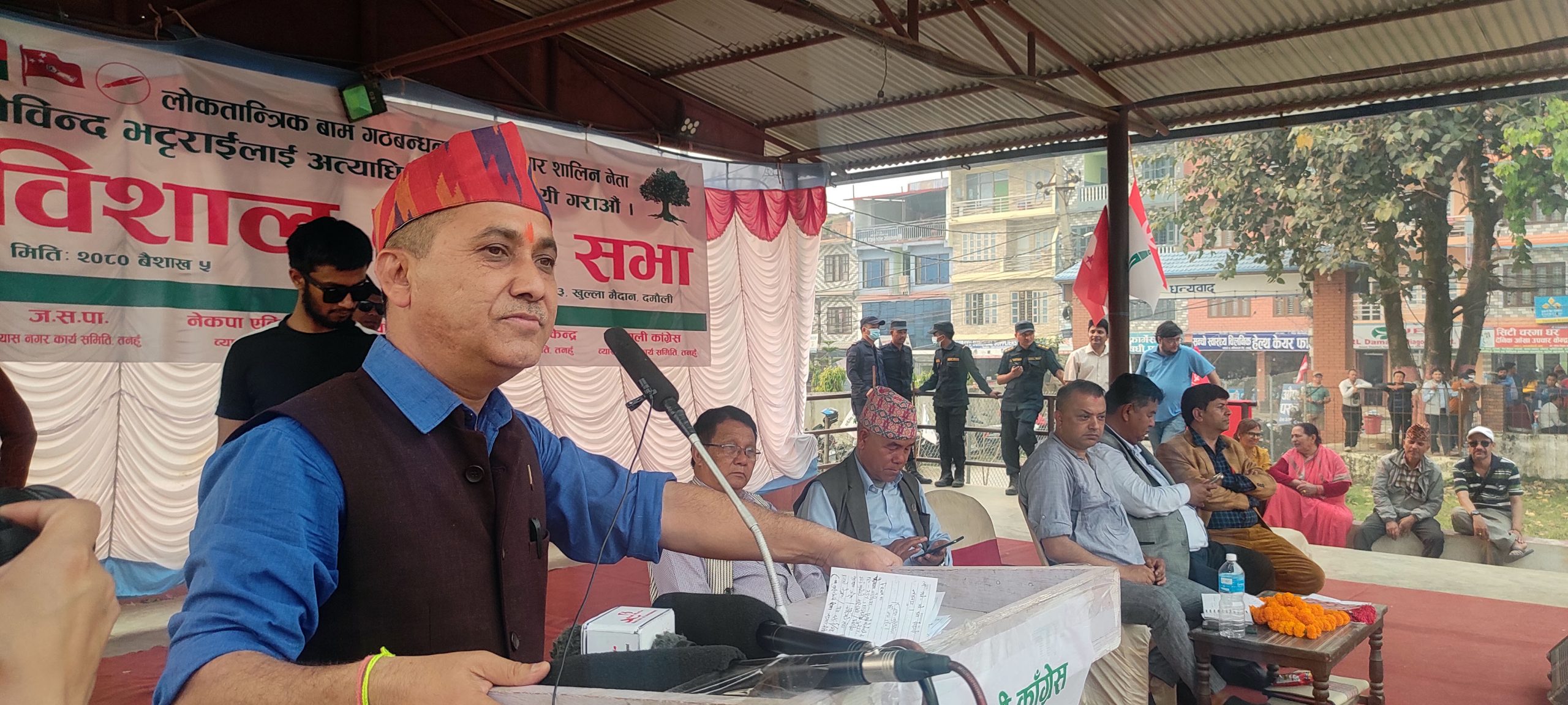 महामन्त्री शर्माले संसद् नहुँदा पनि भट्टराईले यहाँका जनताका लागि धेरै काम गरेको चर्चा गर्दै अब संसद्मा पु¥याएर उहाँमा विकासप्रतिको काम गर्ने चाहनालाई पूरा गर्ने बेला आएको बताउनुभयो ।