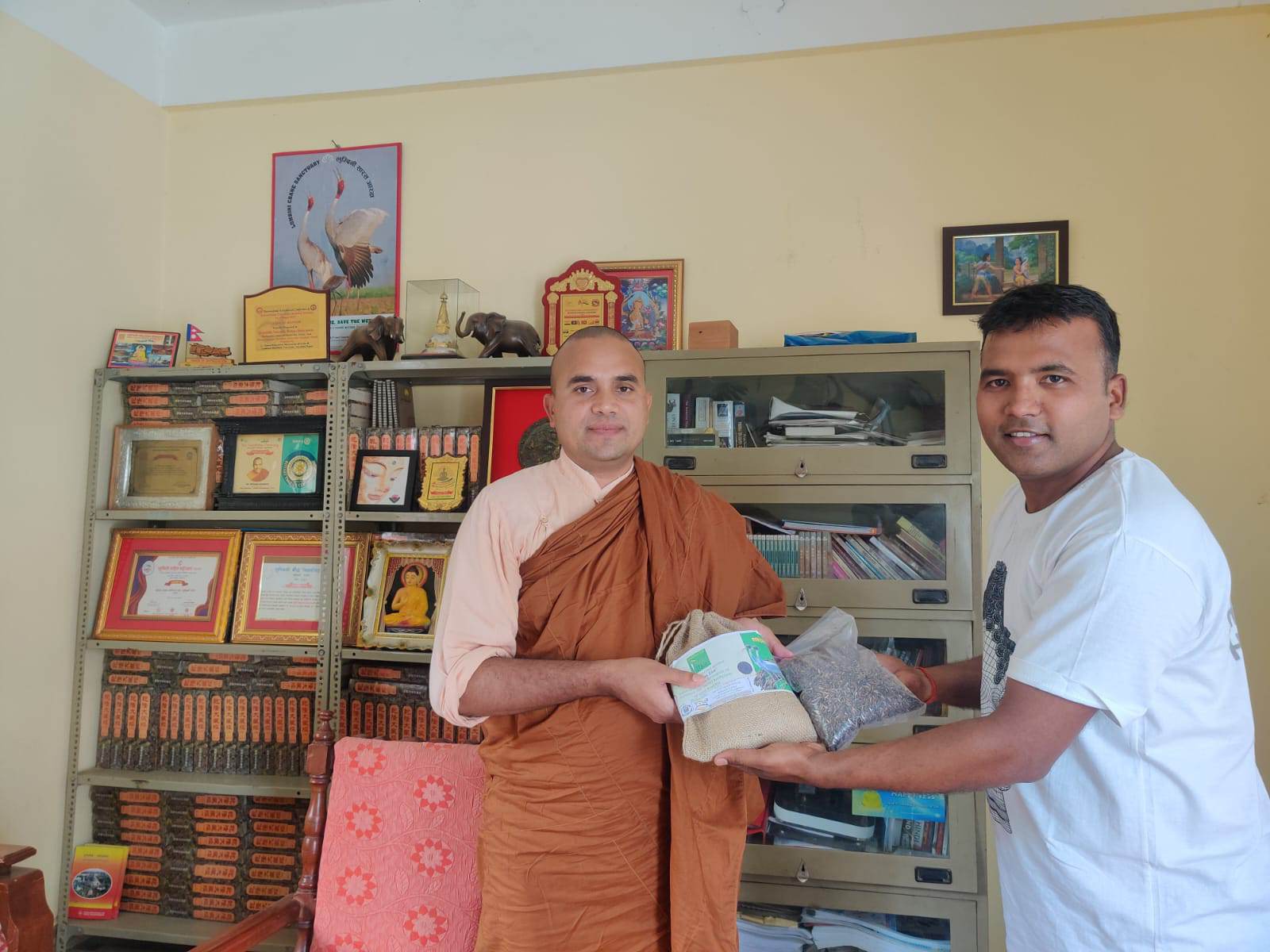 कार्यक्रममा सहभागी हुन जानुअघि शुक्रबार भिक्षु मेत्तेयलाई लुम्बिनी एग्रो टुरिजम एण्ड रिसर्च सेन्टरका तर्फबाट चन्द्रप्रकाश पाठकले कलानामक धानको चामल प्रदान गर्नुभएको छ ।