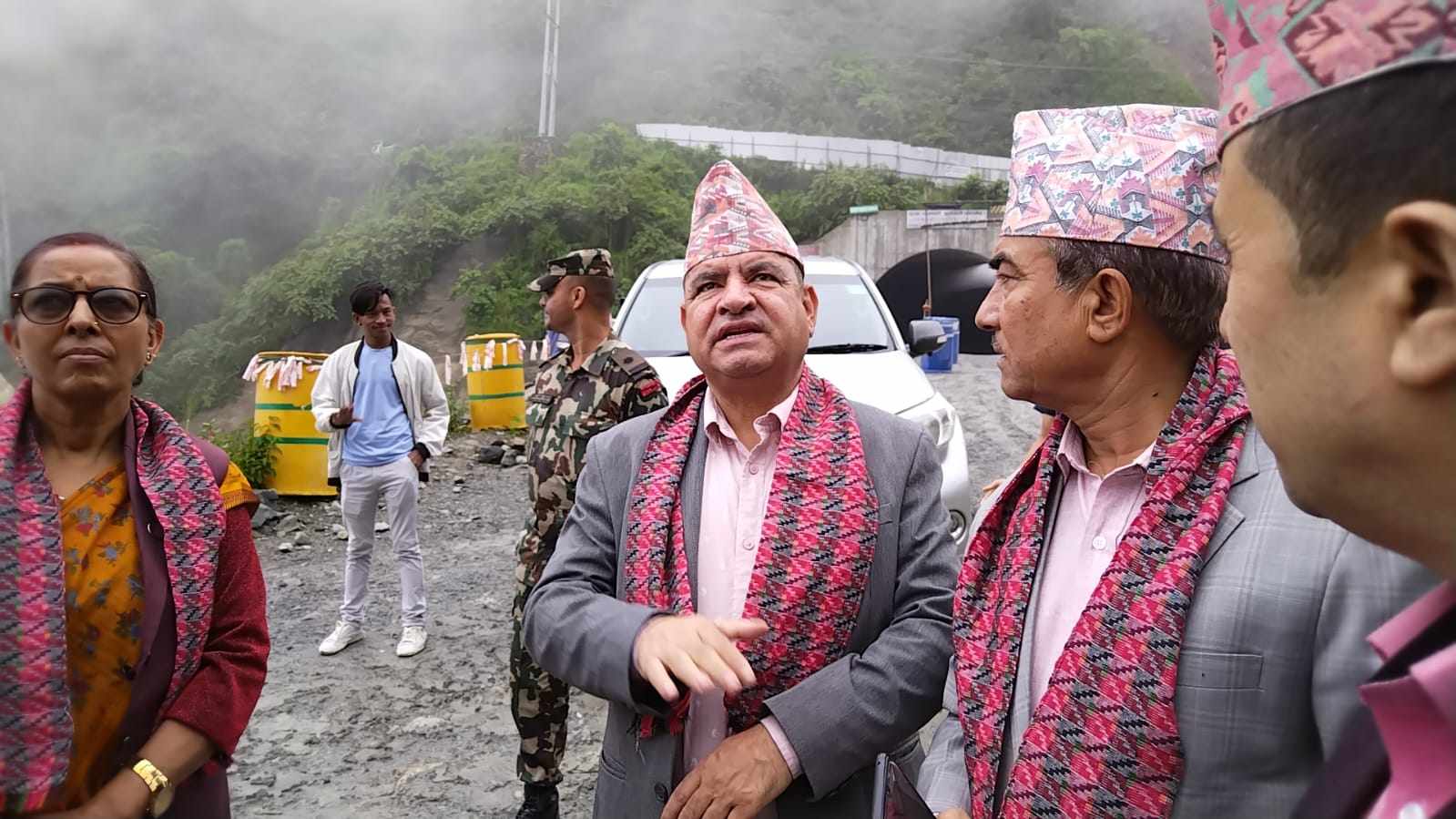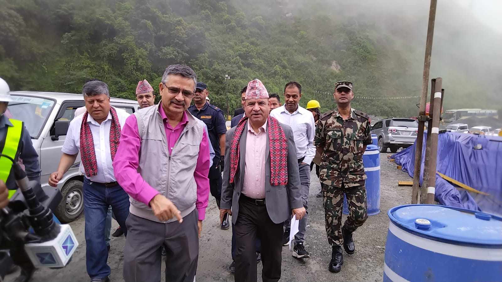 भौतिक पूर्वाधार तथा यातायात राज्यमन्त्री नन्दा चपाईँ, सांसद राजेन्द्रप्रसाद पाण्डे, पूर्वमन्त्री डा गङ्गालाल तुलाधर, सडक विभाग र विश्व बैंकका उच्च अधिकारीको टोलीले निर्माणको अन्तिम चरणमा रहेको सुरुङमार्गको स्थलगत निरीक्षण गरेका हुन् ।