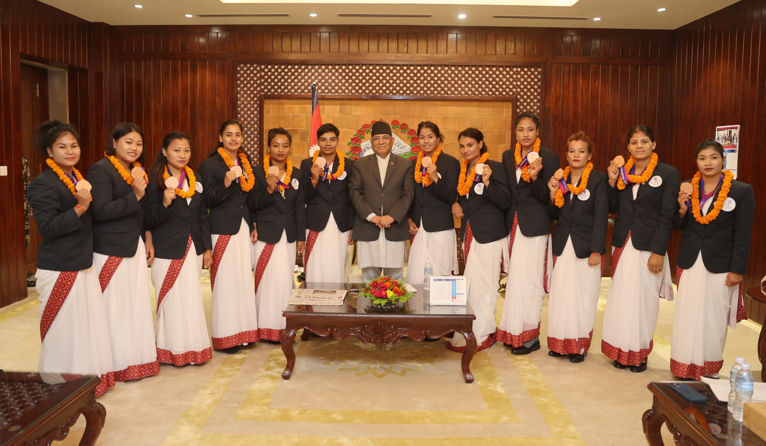 प्रधानमन्त्री निवास बालुवाटारमा भएको भेटघाटमा प्रधानमन्त्री प्रचण्डले प्रतियोगितामा महिला सहभागिताको लागि आफूले बधाई दिएको उल्लेख गर्दै अहिले महिलाले नै मेडल ल्याएको र रेकर्ड बनाएको बताउनुभयो ।