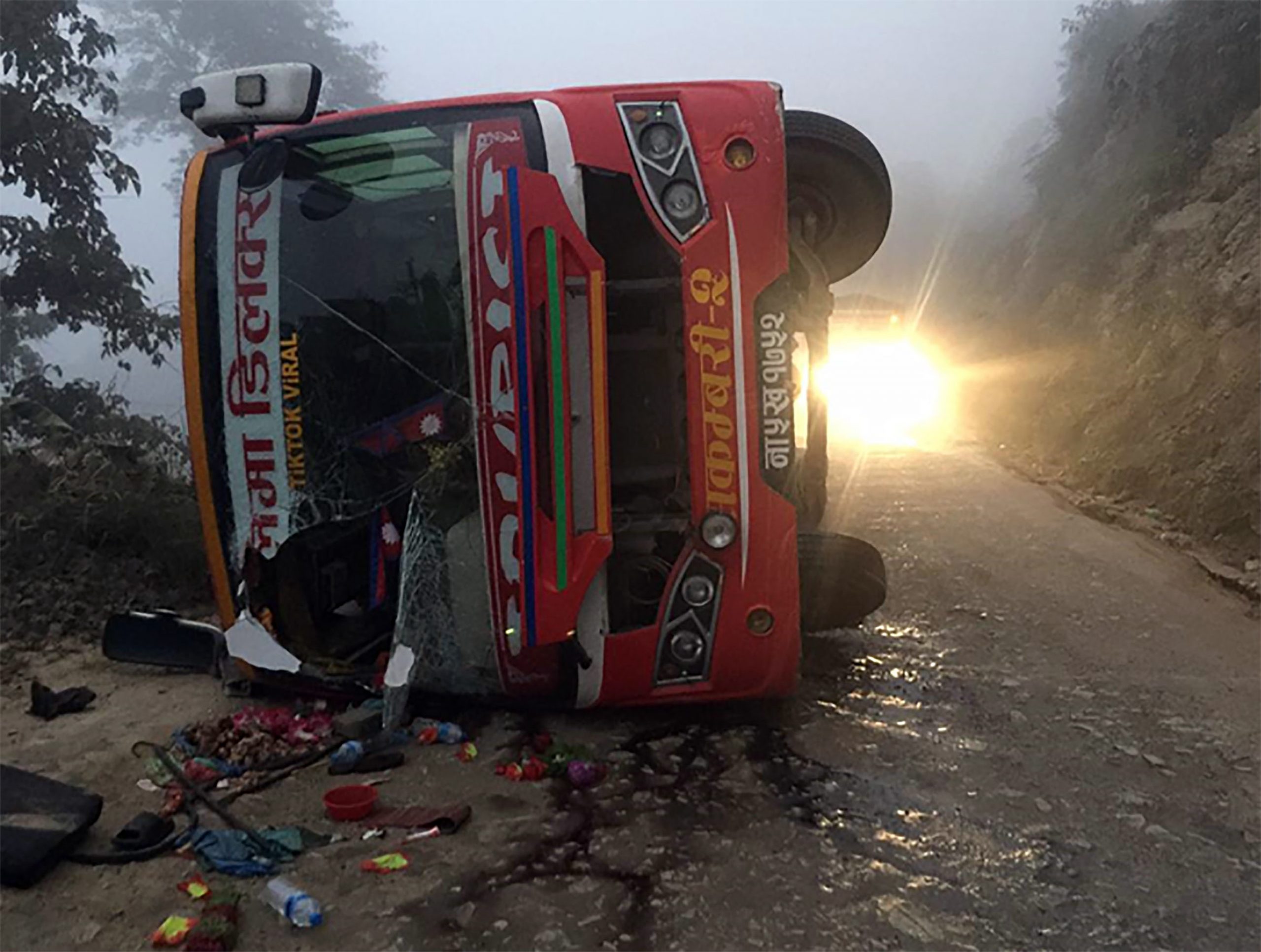 उदयपुरको कटारीबाट पोखरातर्फ आउँदै गरेको ना५ख १७५२ नम्बरको यात्रुवाहक बस अनियन्त्रित भई सडकमा पल्टिँदा बसमा सवार ३४ जना घाइते भएका हुन् ।