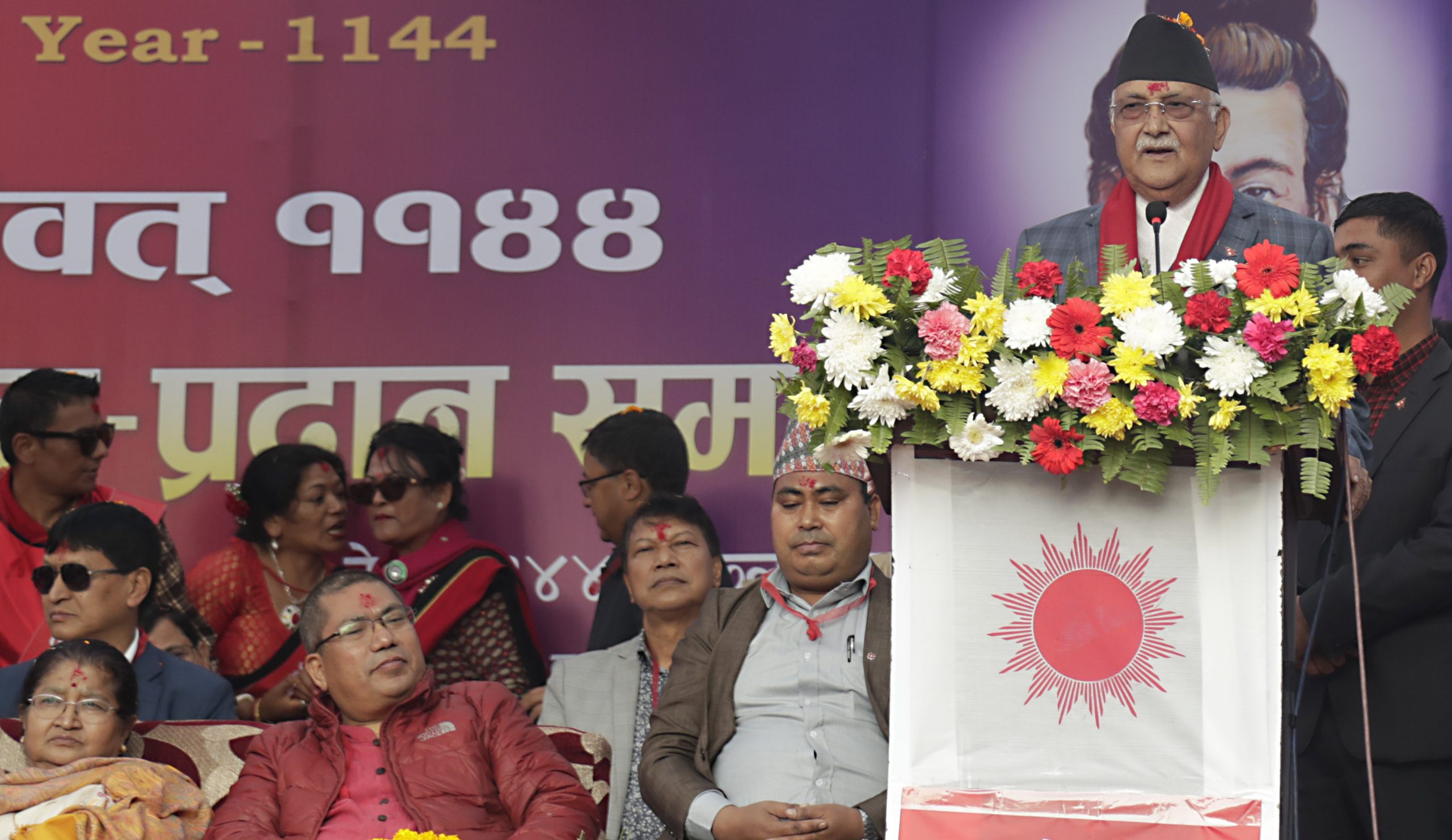 नेपाल संवत् ११४४ को अवसरमा एमाले काठमाडौँ महानगर कमिटीद्वारा आयोजित शुभकामना कार्यक्रममा अध्यक्ष ओलीले नेपाललाई अस्थिर बनाएर फाइदा लिन खोज्ने तत्त्वहरूले पुनः नेपालमा षडयन्त्र सुरु गरेको बताउनु भएको हो ।
