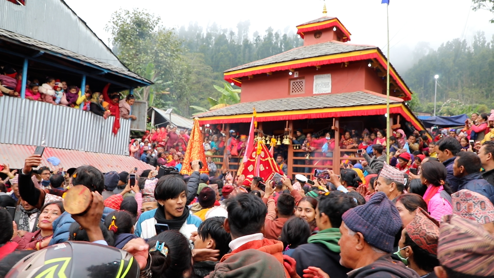 धादिङ- सयौंँ मानिसको भीड । अघिअघि पञ्चेबाजासँगै युवाहरुले नाङ्गो खुडा, खुकुरी बोकेका छन् । दियो, कलश, शङ्ख, घण्ट पनि सँगसँगै छ । प्रहरी र भक्तजनले बनाएको हाते साङ्लोको घेराभित्र लामो कपाल मात्र देखिने प्रतिमूर्ति । सयौँ मानिस बाटोको दायाँबायाँ बसेर पूजापाठ र अबिर जात्रा गर्दै थिए ।