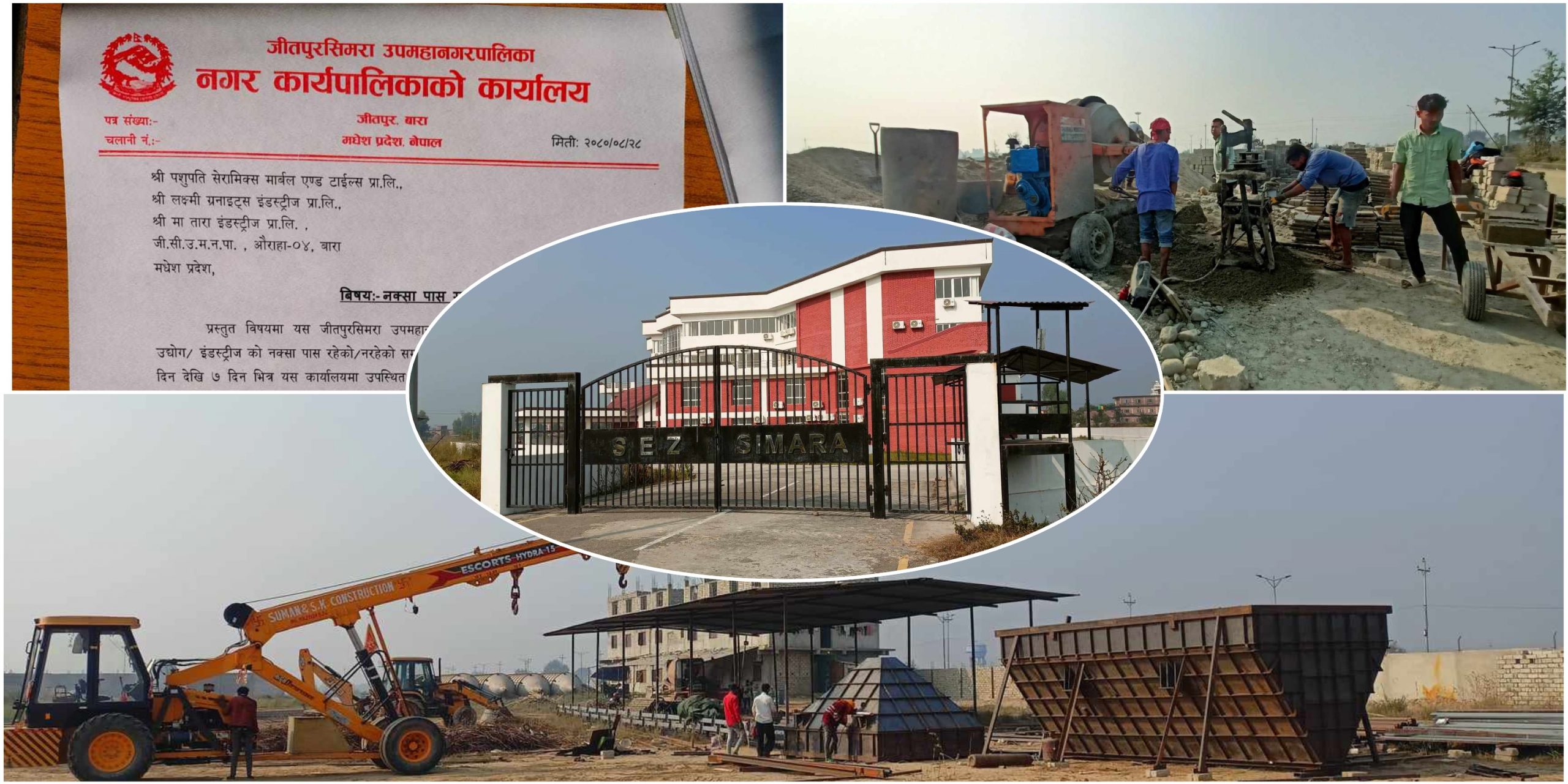 बारा- बाराको सिमरामा निर्माण भईरहेको बिशेष आर्थिक क्षेत्र प्राधिकरण सेजभित्र बनेका सार्वजनिक संरचनाहरुको सात दिनभित्र नक्सा पास नगरे सम्पुर्ण संरचना भत्काउने जीतपुर सिमरा उपमहानगरले चेतावनी दिएको छ ।