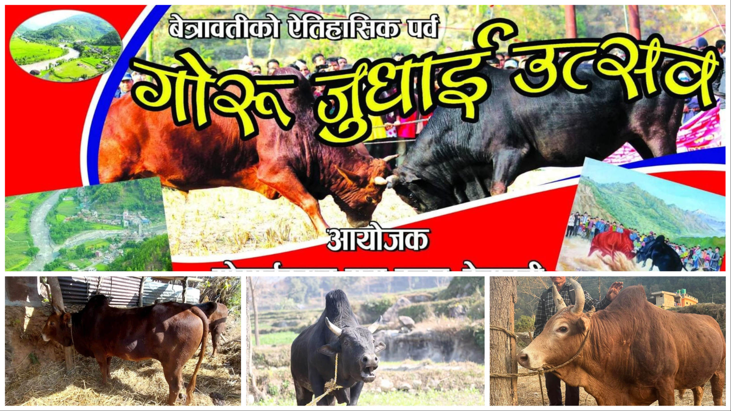 रसुवा- माघे संक्रान्तिमा हरेक वर्ष गोरु जुधाउने मेला हुँदै आएको रसुवा र नुवाकोटको संगम स्थल बेत्रावतीमा यस बर्ष नौ हल गोरु जुधाइने भएको छ ।