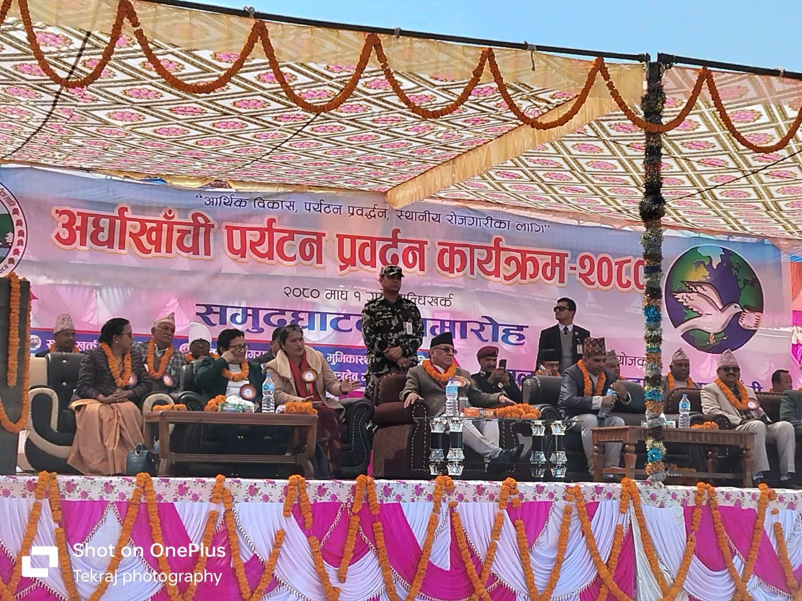 सोमबार दिउँसो नेपाल पत्रकार महासंघ अर्घाखाँचीद्वारा सन्धिखर्कमा आयोजित “आर्थिक विकास, पर्यटन प्रवद्र्धन, स्थानीय रोजगारीका लागि अर्घाखाँची पर्यटन प्रवद्र्धन कार्यक्रमको उद्घाटन गर्दै प्रधानमन्त्रीले सो कुरा बताउनुभएको हो।