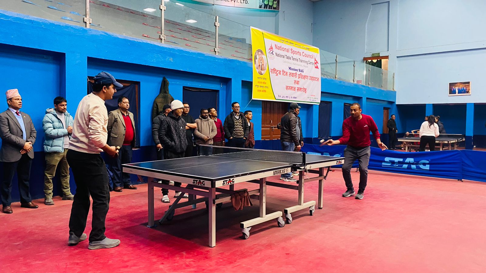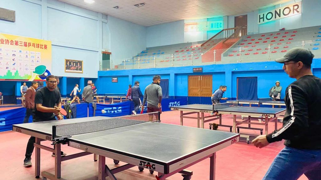 नेपाल टेलिभिजनका कार्यकारी अध्यक्ष समिरजंग शाह टेबुलटेनिस खेल खेल्नु हुदै ।