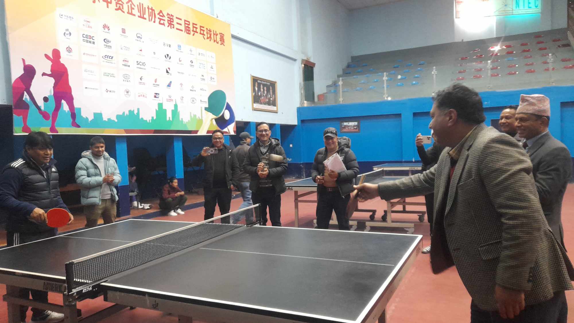 नेपाल टेलिभिजनका कार्यकारी अध्यक्ष समिरजंग शाह टेबुलटेनिस खेल खेल्नु हुदै ।