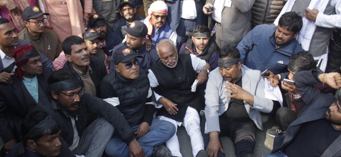 निषेधित क्षेत्र खुला गर्न मागगर्दै महतो नेतृत्वको अभियानको धर्ना
