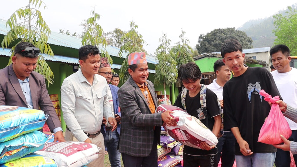 राक्सिराङ्ग गाउँपालिकाको कार्यालयमा एक कार्यक्रमका बिच परीक्षा अवधीभरलाई पुग्नेगरी प्रति विद्यार्थी १२.५ केजी चामल, एक लिटर तेल, एक केजी दाल र नुन उपलब्ध गराइएको हो ।