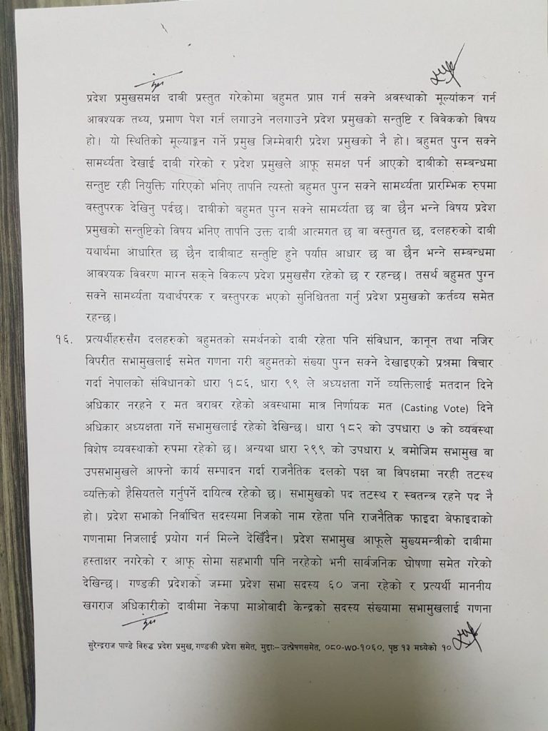 बहुमतको बैधानिकता परीक्षण प्रदेशसभाबाटै हुन्छ : सर्वोच्च