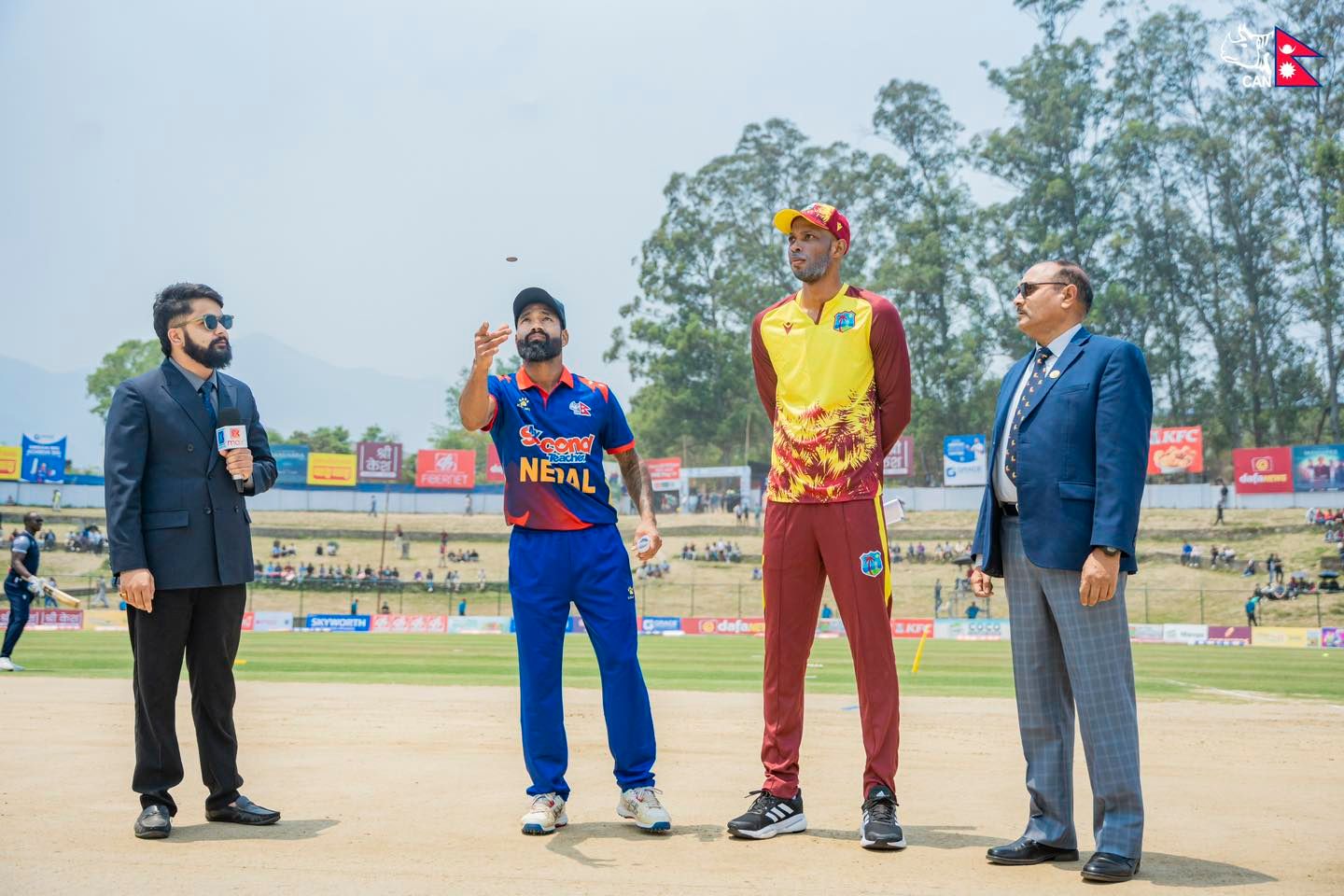 कीर्तिपुरस्थित त्रिवि क्रिकेट मैदानमा भएको टसमा वेस्टइन्डिज ए का कप्तान रोश्टन चेशले टस जितेर ब्याटिङ रोजेका हुन् । नेपालको कप्तानी भने दीपेन्द्रसिंह ऐरीले गर्नेछन् । अघिल्ला खेलका कप्तान रोहितकुमार पौडेलसहित कुशल भर्तेल, सोमपाल कामी र प्रतिश जिसीलाई आज विश्राम दिइएको छ ।