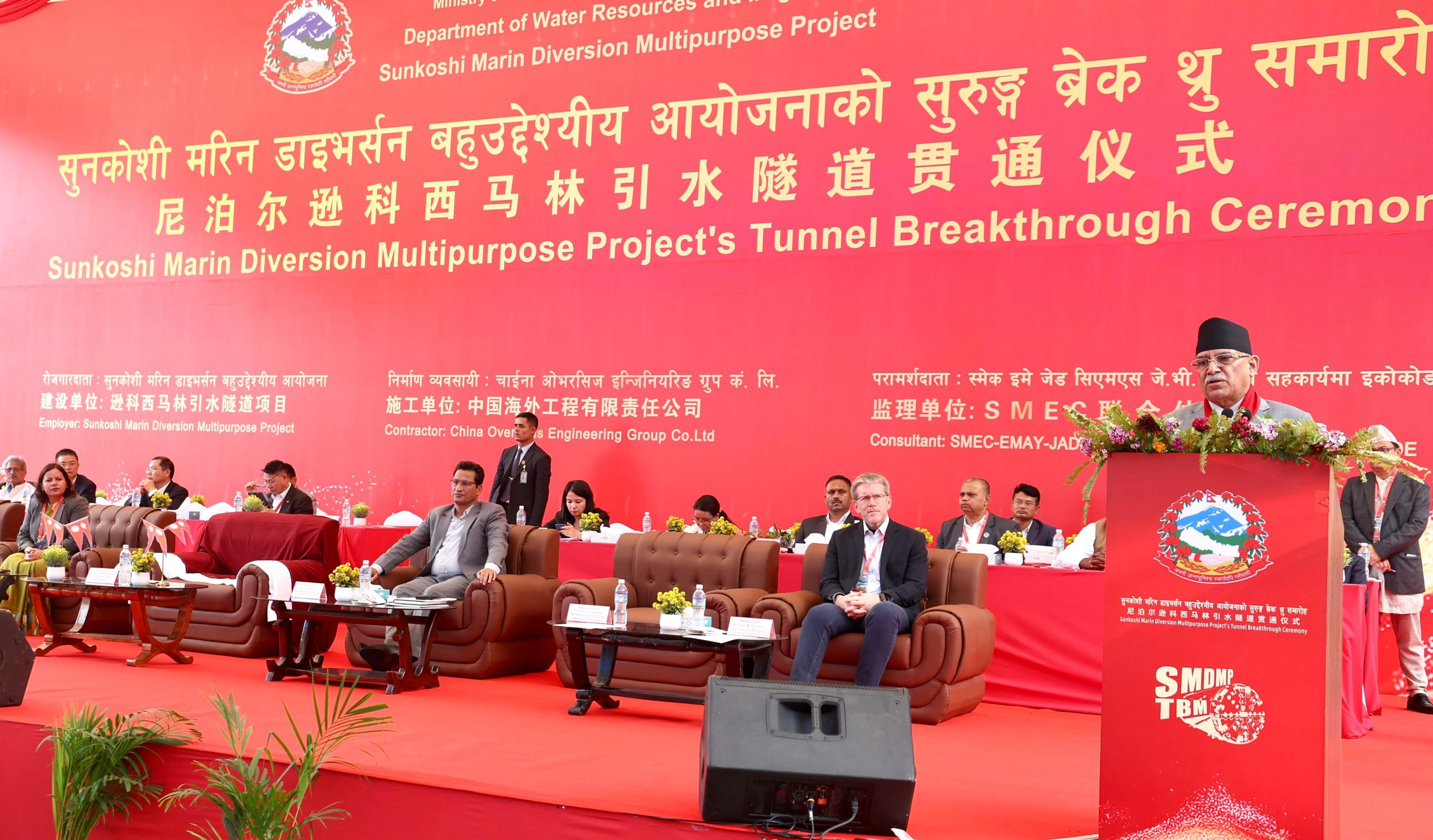 सुनकोशी मरिन डाइभर्सन बहुउद्देश्यीय आयोजनाको सुरूङ ‘ब्रेक-थ्रु’