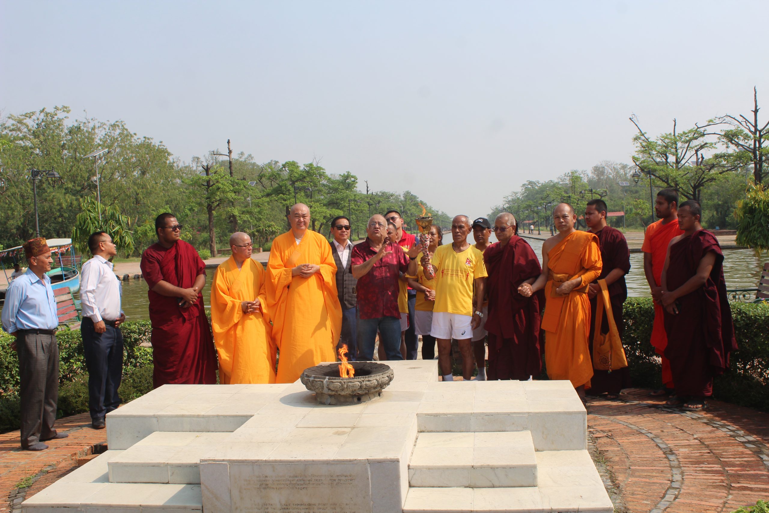 कार्यक्रममा बौद्ध भिक्षुहरूबाट बौद्ध परित्राण पाठ गरी ‘लुम्बिनी पिस फ्लेम’ नाम दिइएको उक्त शान्ति दीपको ज्योति टर्चलाइटमा प्रज्ज्वलन गरी हस्तान्तरण गरिएको हिमालय एक्सपिडिसनका संस्थापक एवं अध्यक्ष विक्रम पाँडेले जानकारी दिनुभयो । उहाँले भगवान् गौतमबुद्धको जन्मस्थल लुम्बिनीबाट सगरमाथासम्म पुर्याइने यो यात्राले यस क्षेत्रलाई नयाँ पहिचान दिलाएको बताउनुभयो ।