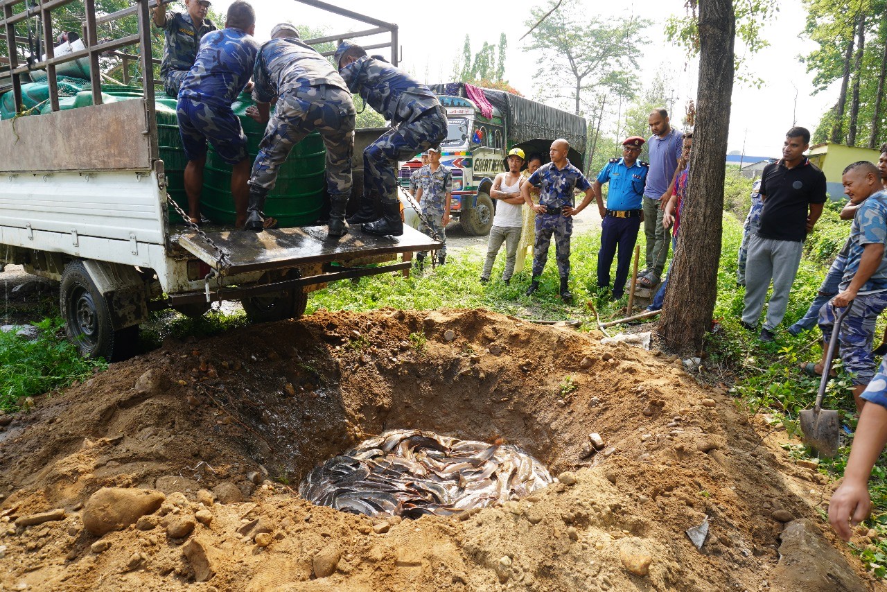 बरामद गरिएको माछा प्रहरी, जनप्रतिनिधि, सञ्चारकर्मी, भेटनरी अस्पताल तथा पशु सेवा विज्ञ केन्द्र हेटौंडाका प्रतिनिधि लगायतको रोहवरमा कार्यालय परिसरमा खाल्डो खनेर नष्ट गरिएको छ ।