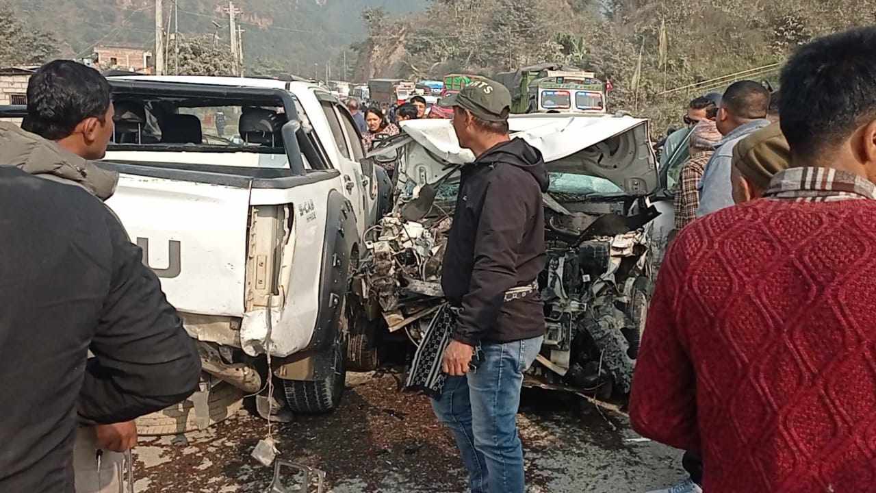 पृथ्वी राजमार्गमा पाँच ओटा सवारीका साधनहरु एक आपसमा ठक्कर खाइ दुर्घटना
