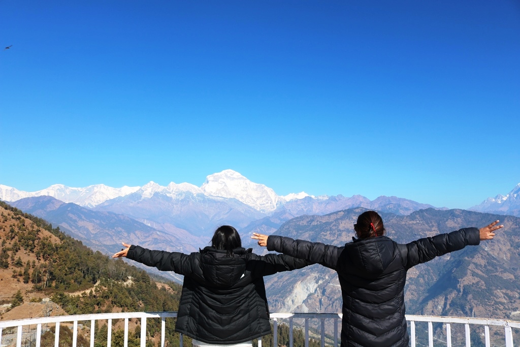 मौसम खुलेको समयमा धौलागिरि रेञ्ज र अन्नपूर्ण रेञ्जमा पर्ने सबैजसो हिमालहरु छर्लङ्गै देखिन्छन् । संसारको सातौं अग्लो चुचुरो धौलागिरि हिमालमा मात्रै विभिन्न ६ ओटा चुचुराहरु रहेका छन् ।