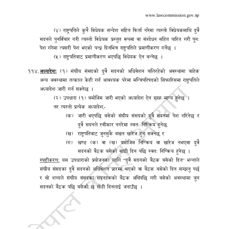 नेपालको संविधानले सरकारले ल्याएको अध्यादेश सदन संचालन भएको ६० दिन भित्र सदनबाट पारित गर्नुपर्ने संवेधानिक ब्यवस्था गरेको छ ।