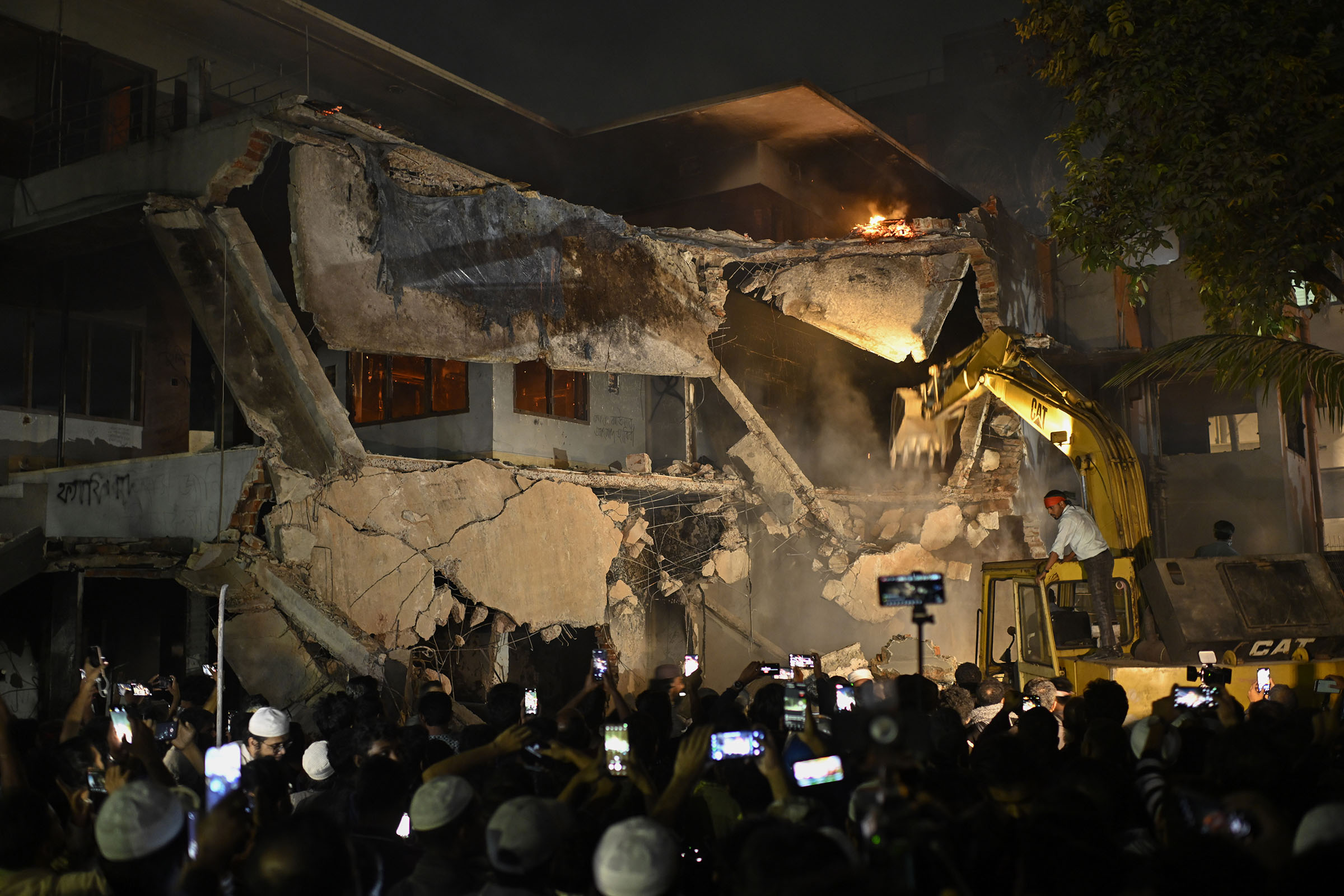 सबैभन्दा ठूलो बङ्गाली दैनिक प्रथम आलोले खुल्ना सहरमा हसिनाको परिवारको स्वामित्वमा रहेको भवन ध्वस्त पार्न भीडले सरकारी स्वामित्वको उत्खनन यन्त्र प्रयोग गरेको रिपोर्ट गरेको छ ।