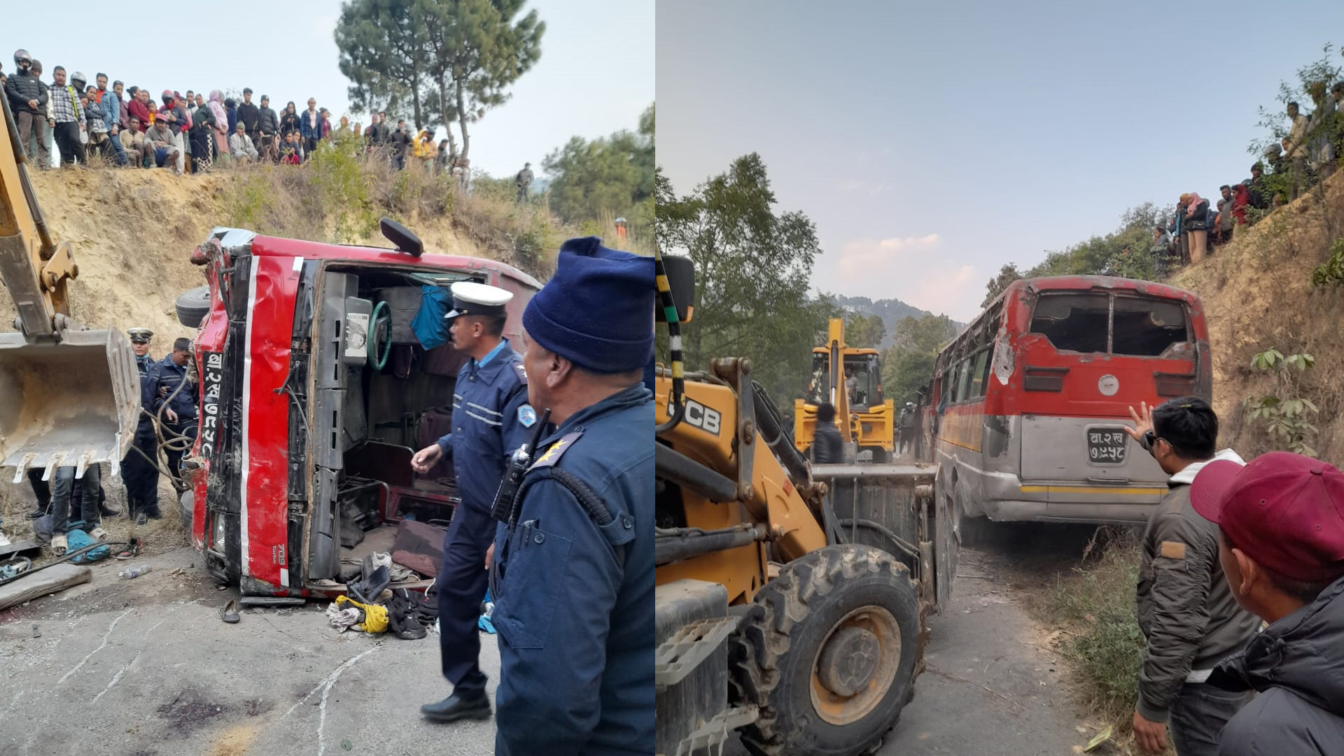 सडकबाट २० फिट तल खसेर भएको उक्त दुर्घटनामा बुधबार बसमा सवार मोरङको उर्लाबारी नगरपालिका–७ घर भएका ११ वर्षीय क्रिस्चल पुरी, सिन्धुपाल्चोकको बलेफी गाउँपालिका–७ बस्ने २३ वर्षीय सुरेश तामाङ र काठमाडौँ बौद्ध बस्ने सिन्धुपाल्चोकको त्रिपुरासुन्दरी गाउँपालिका–३ घर भएका १४ वर्षीय शुसाङ्क डोटेलको मृत्यु भएको थियो । उनीहरु तीनै जना विद्यार्थी हुन् ।