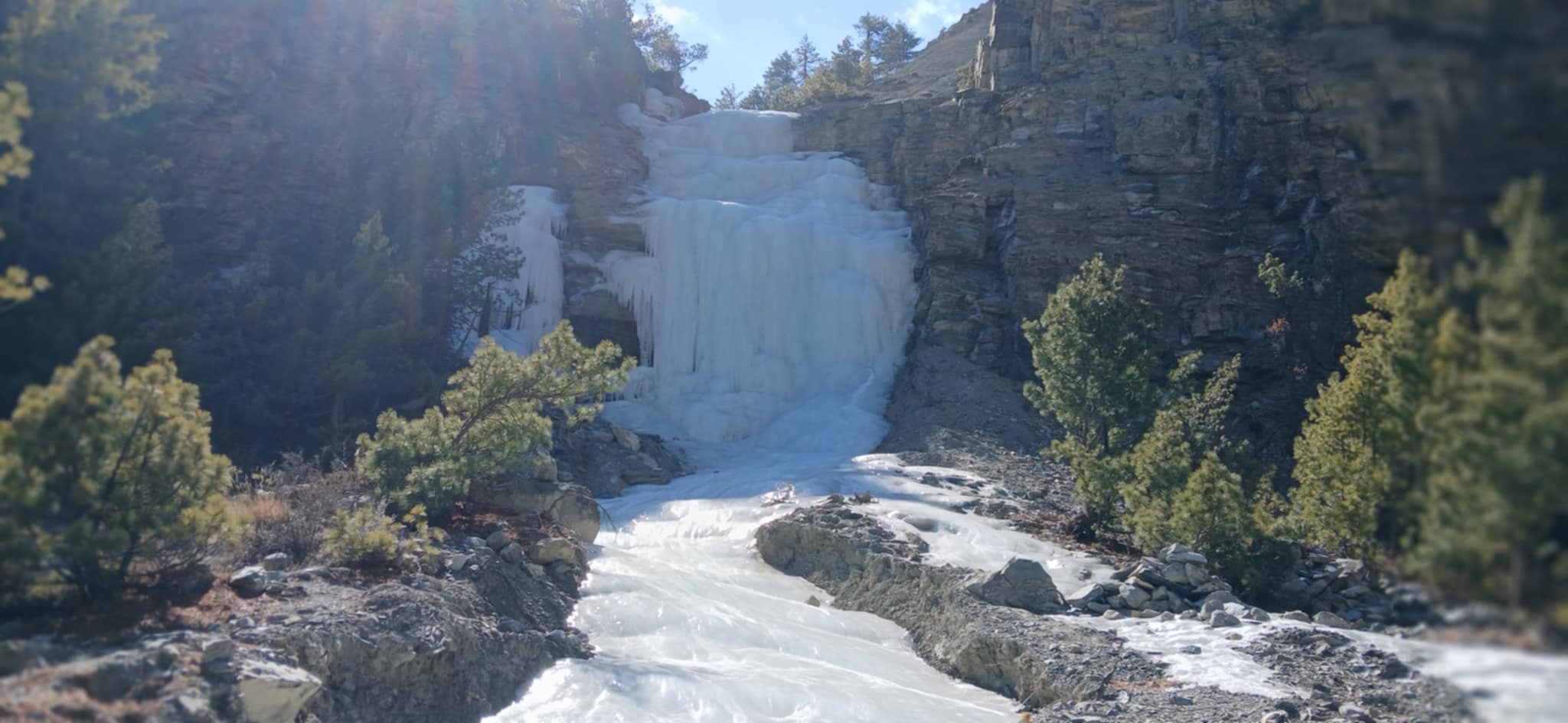 चिसोले झरना, खोला जमेका छन् तर हिमालमा हिउँ छैन