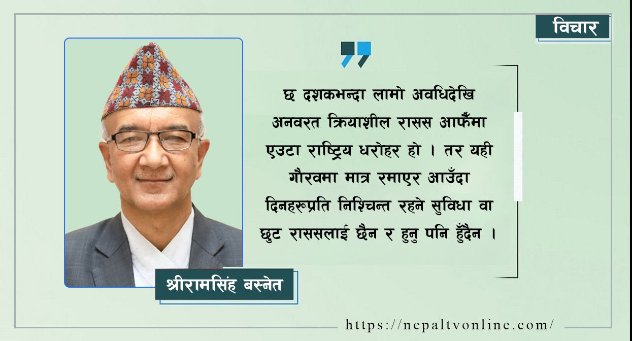 (वरिष्ठ पत्रकार बस्नेत राससका पूर्वमहाप्रबन्धक हुनुहुन्छ)