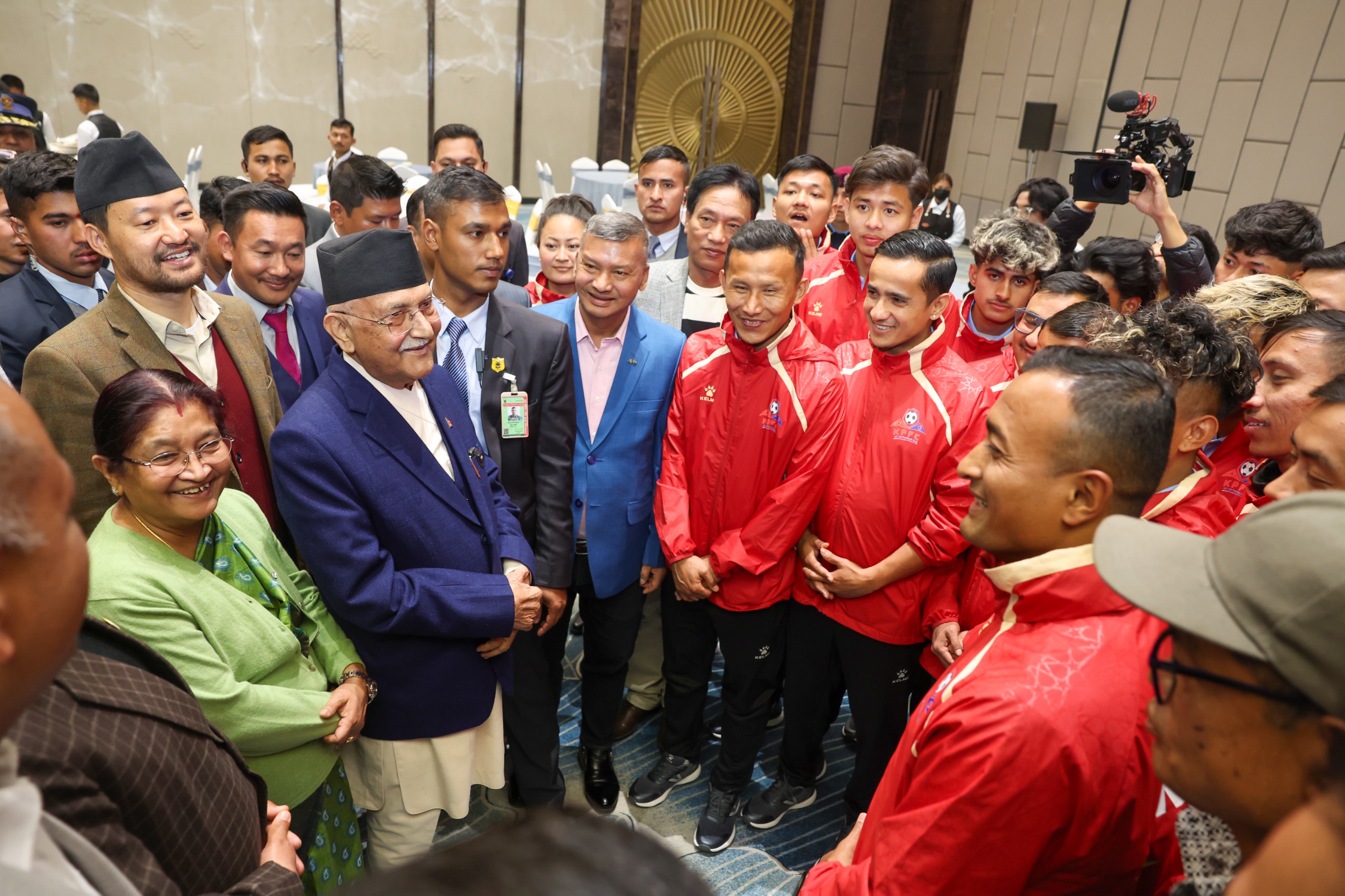 प्रधानमन्त्री र केपी ओली कप फुटबल च्याम्पियनसिपका खेलाडीबीच भेट