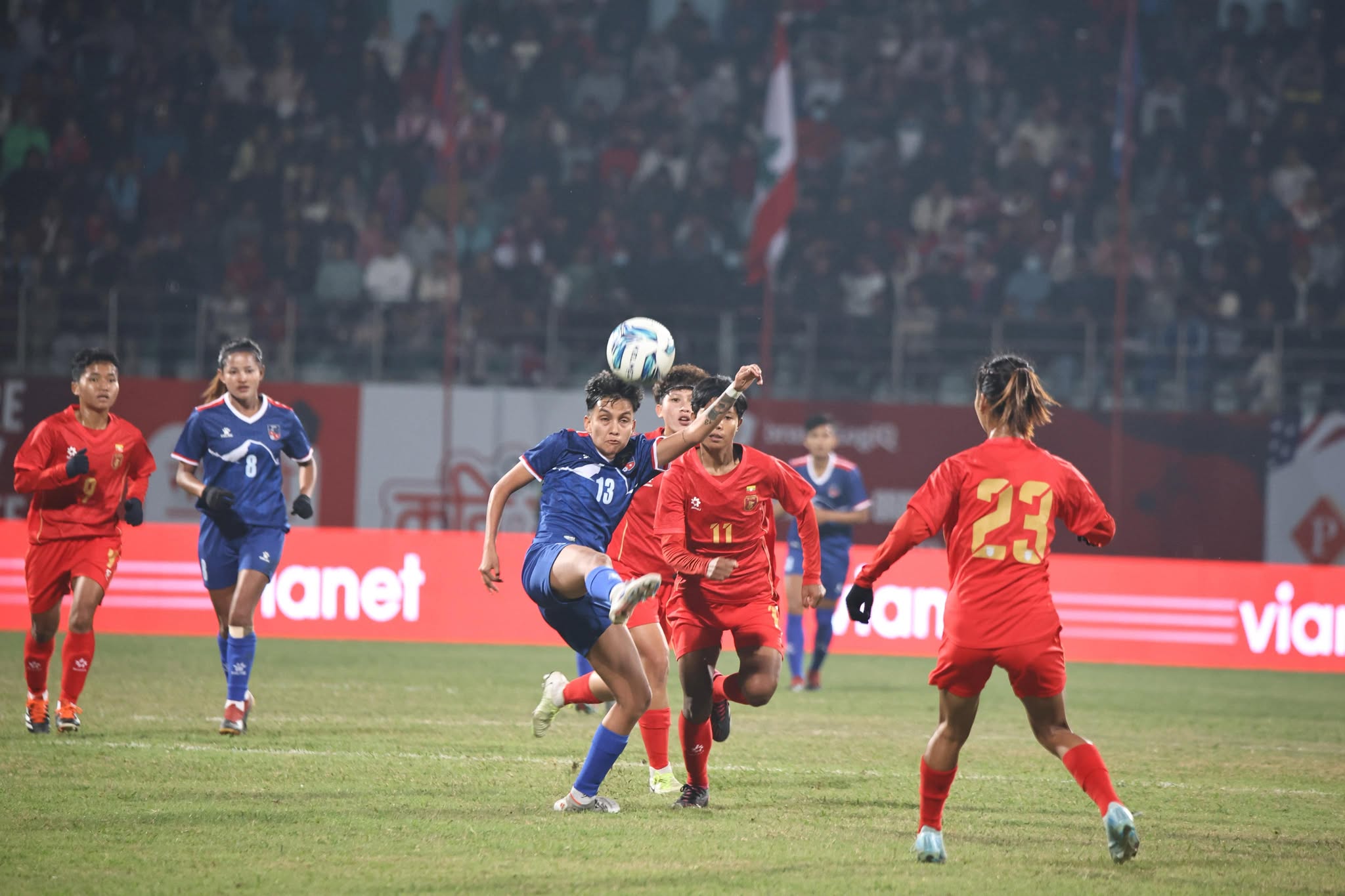 खेलको ४३ औं मिनेटमा रेखा पौडेलले हेडिङबाट गोल गर्न लाग्दा म्यानमारका डिफेन्डरले उनलाई रोके । नेपाली खेलाडीमा आपसी तालमेल नमिल्दा नेपालले गोल गर्न सकेन । ५५ औं मिनेटमा साबित्रा भण्डारीले गरेको हेडिङ पोस्टभन्दा थोरै बाहिर गयो ।
