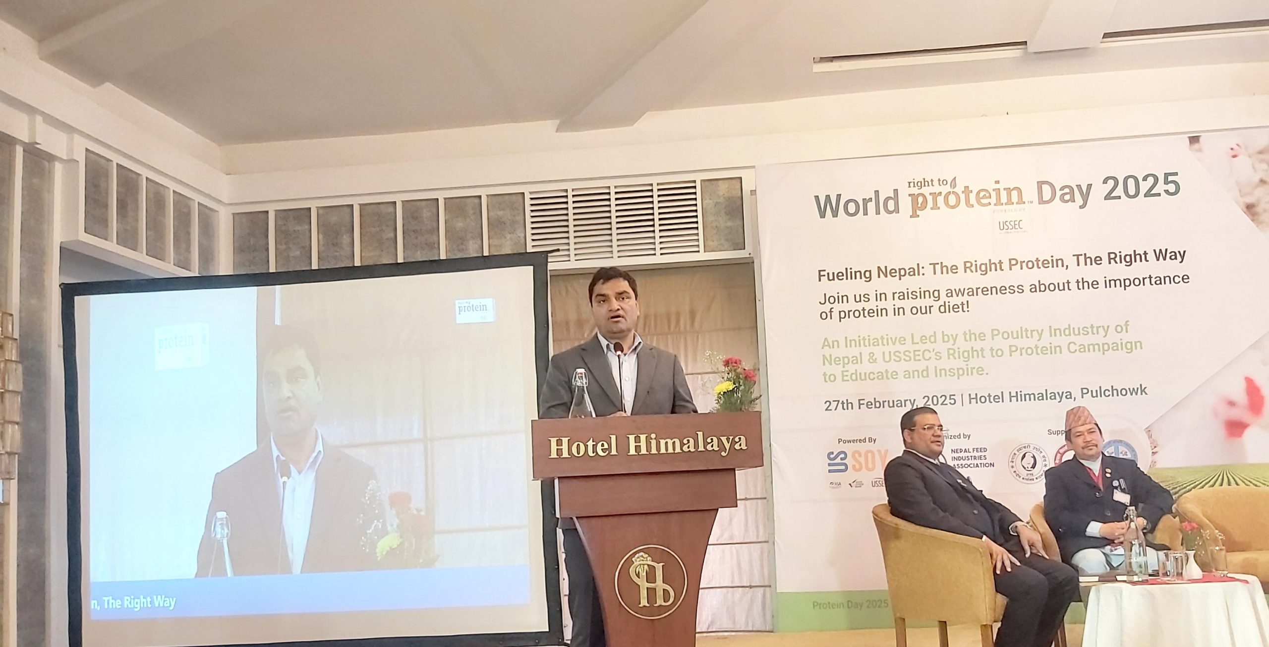 नेपाल दाना उद्योग सङ्घका अध्यक्ष रबिन पुरीले उत्पादनदेखि उपभोगसम्म सुरक्षित खाद्यान्न नीतिको अवधारणामा रहेर खाद्य सुरक्षाको लागि प्रोटिनको सुनिश्चितता हुनुपर्नेमा जोड दिनुभयो ।।