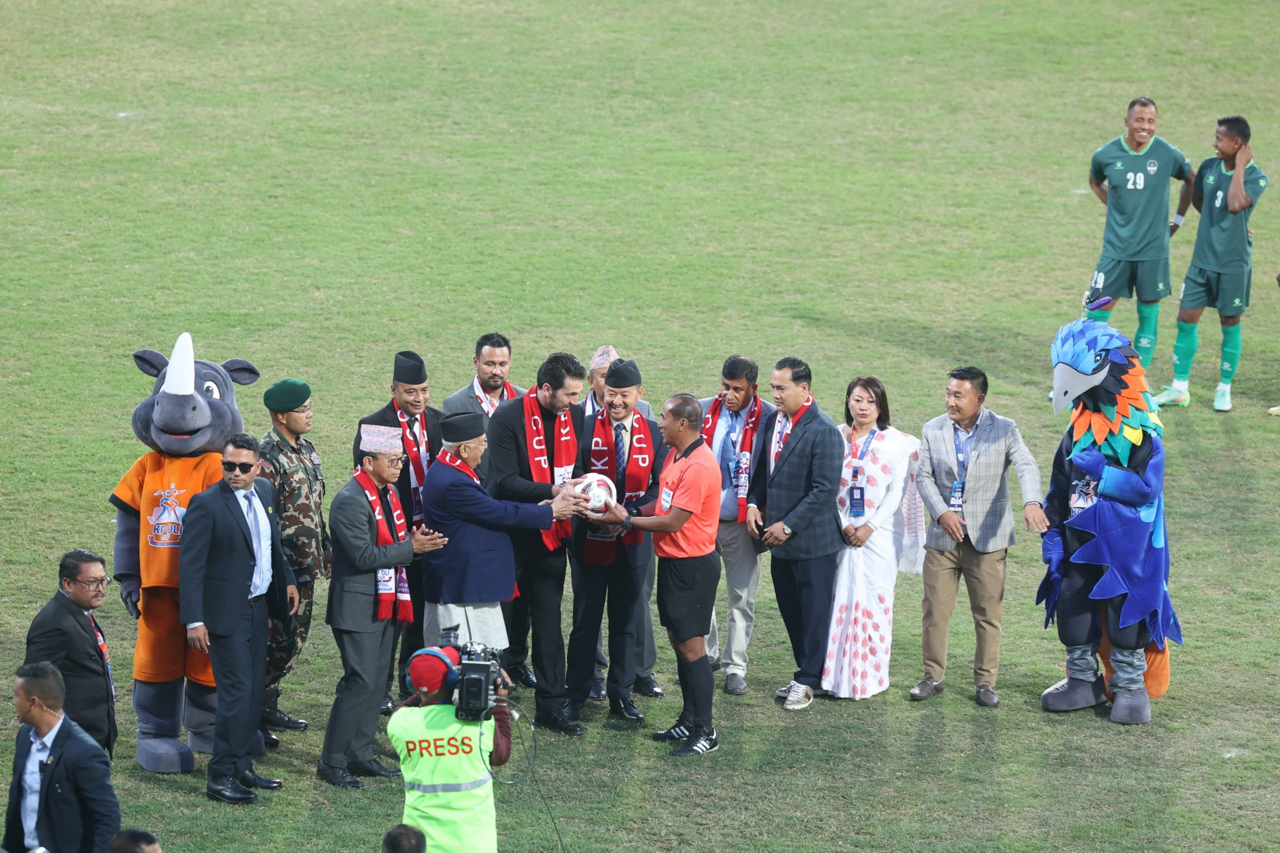 काठमाडौँ-। प्रधानमन्त्री केपी शर्मा ओली तेश्रो केपी ओली कप फुटबल च्याम्पियनसिपको समापन कार्यक्रममा सहभागी हुुनुुभएको छ ।
