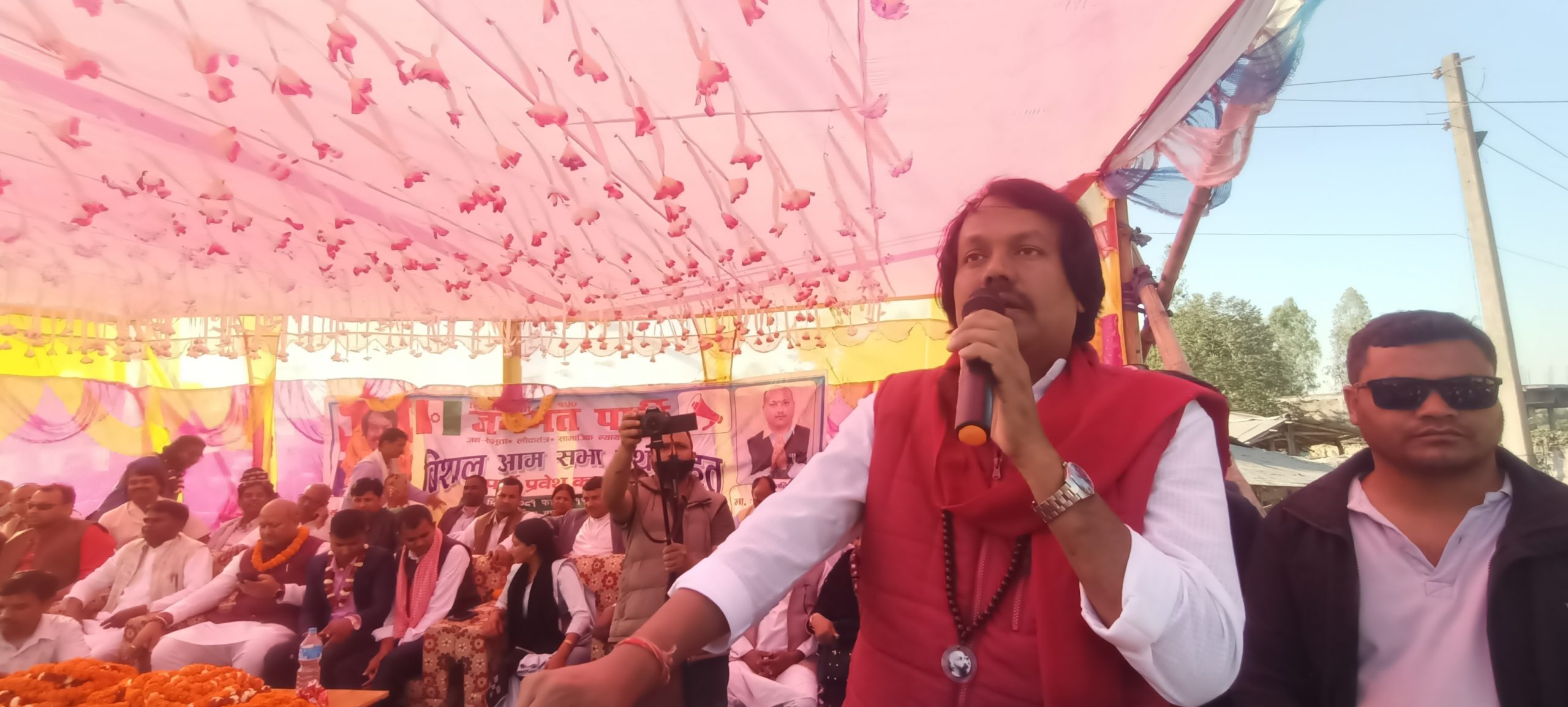 बाराको फेटा गाउँपालिकामा आयोजित सभामा बोल्दै अध्यक्ष राउतले सङ्घीयता र प्राप्त लोकतन्त्र कमजोर पार्न दुई दलीय व्यवस्था ल्याउन शासक वर्ग लागेको र राजतन्त्रवादीहरू समेत पुरानो व्यवस्था फर्काउन लागि परेकोले यो व्यवस्था सङ्कटमा रहेको उहाँले बताउनु भएको हो ।