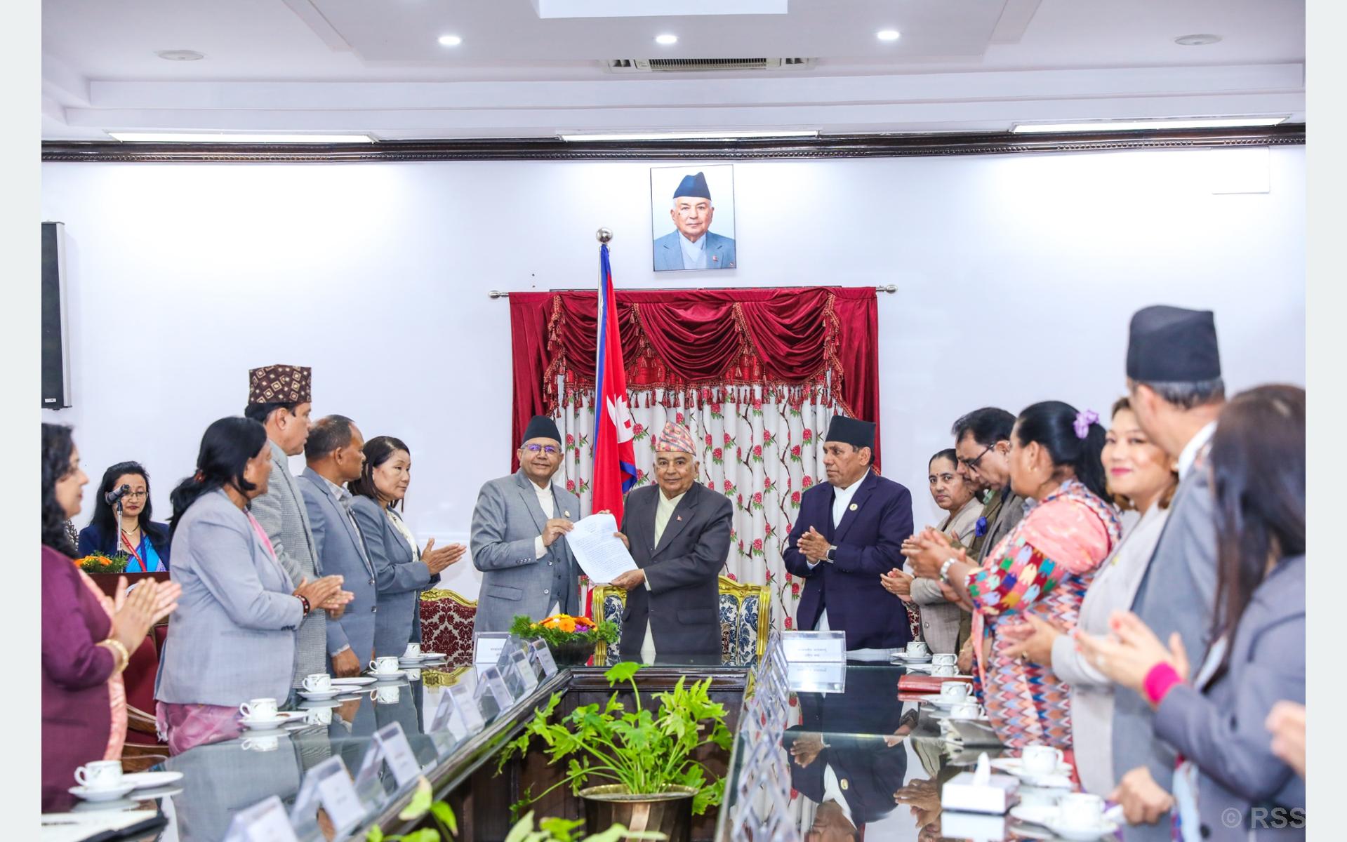 राष्ट्रपति कार्यालयमा आज आयोजित अन्तर व्यवस्थापिका मञ्चको पोखरा घोषणापत्र हस्तान्तरण कार्यक्रममा